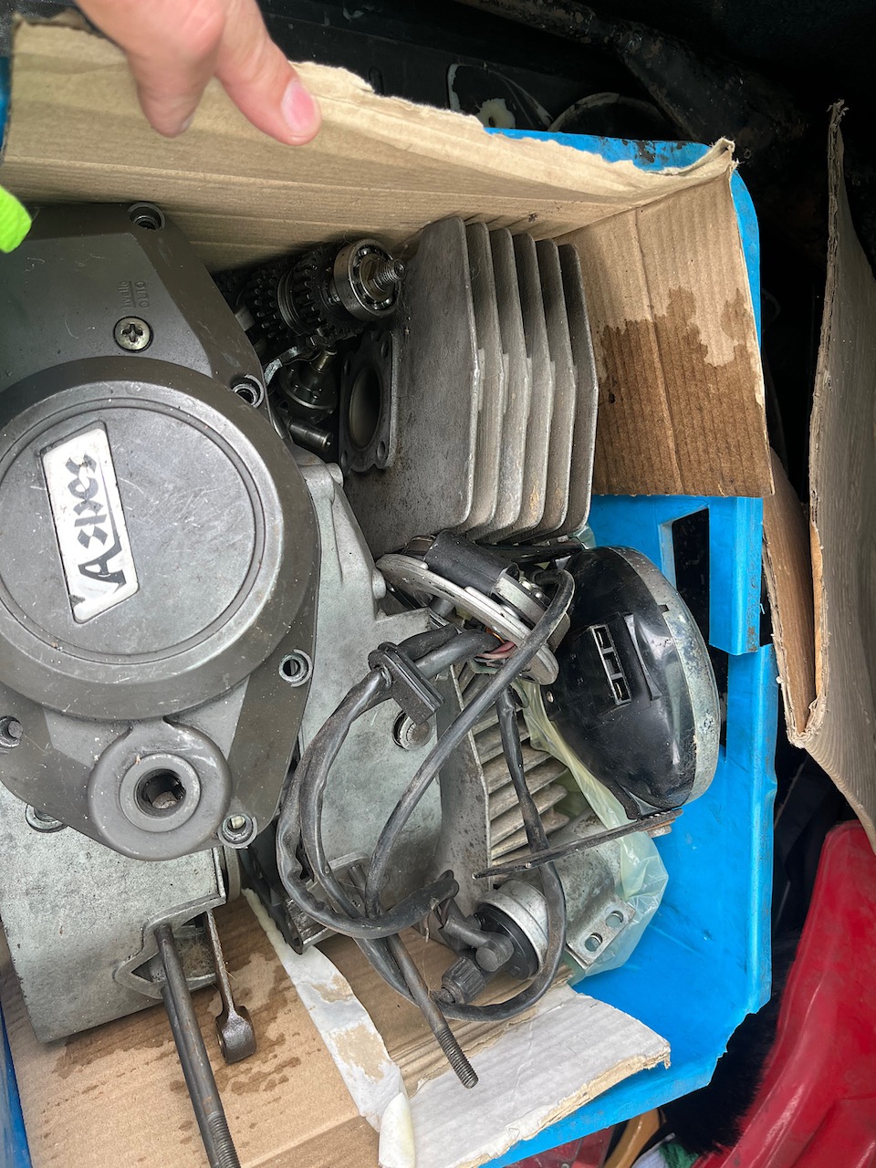 Vor Zerlegung die übliche nochmalige Bestandsaufnahme gemacht, insgesamt ein guter, wenig vergammelter Zustand, hat sich auch beim Zerlegen bestätigt. Es fehlte leider das Innenleben vom Luftfilterkasten, hier konnte mir netter- und glücklicherweise der Florian schon helfen!!! ::- ::-