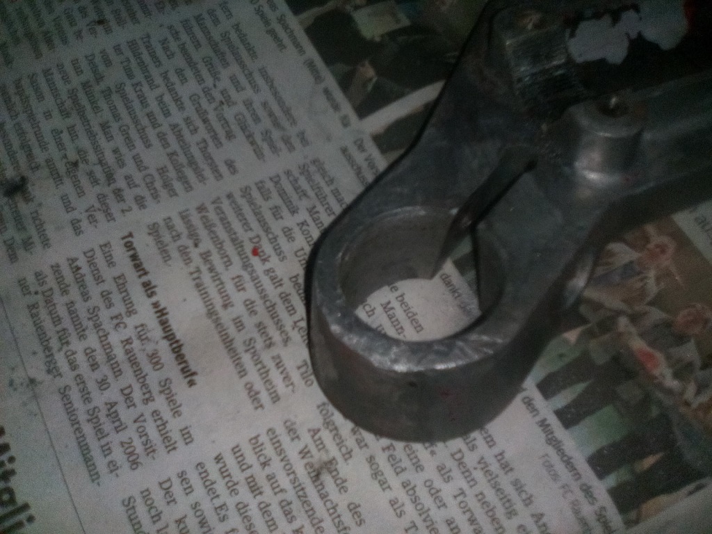 Aber die Gabel ist gerichtet, neue Simmerringe drinnen. Der Chrom ist aber noch grottenschlecht, das bleibt aber erst mal so. Den Zylinder habe ich gegen einen aus Frankreich im Originalzustand (ca. 1,3 PS) getauscht und zu Zähringer eingeschickt,der hat ihn mir gehohnt und einen passenden Kolben dazu geschickt. Ist auch schon moniert.