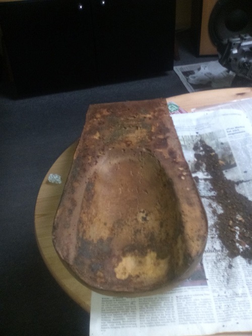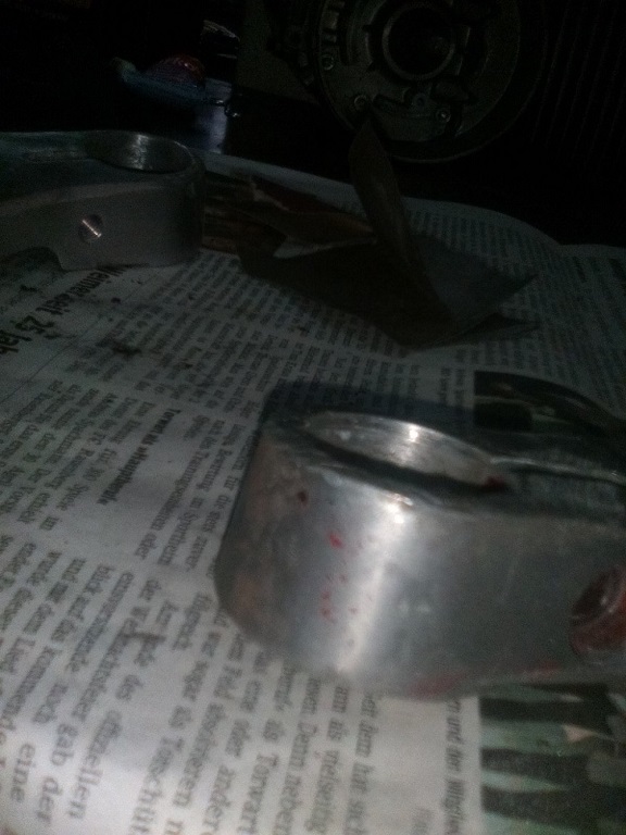 ich hab gestern mal die Gabelbrücken meiner stark ramponierten CS75 in Angriff genommen. Eigentlich wollte ich sie wie original schön blank polieren, aber nach dem entfernen der alten aufgepinselten schwarzen Farbe sind zwei von zahlreichen Hammerschlägen stark malträtierte Teile zum Vorschein gekommen. Die untere Brücke wäre ziemlich ok, aber die obere ist unmöglich blank und schön zu restaurieren. Also hab ich die Macken glatt gefeilt, geschliffen und gespachtelt. Dann werden sie halt doch lackiert, helles silber, dann kommt es dem original einigermaßen nahe.