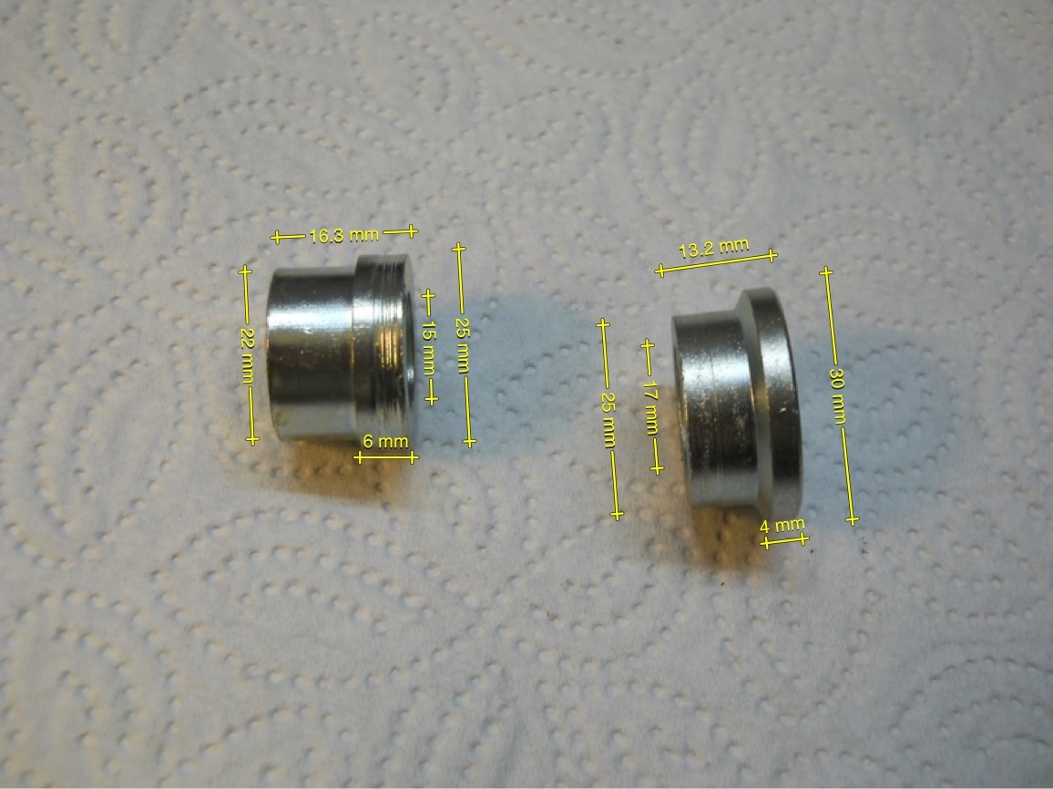 hier erst mal das Bild der Distanzbuchsen, Links für vorne Rechts für hinten
