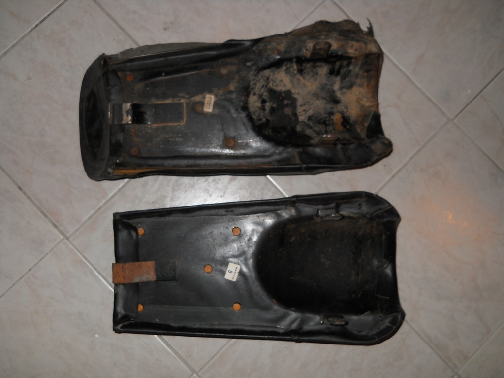 Die beiden Einmannsitzbänke sind eine gebrauchte von einem 78er Modell und eine neue von einem 76/77er Modell (solche Bänke gab es noch vor 2 Jahren für 35 Euro in ebay.it)