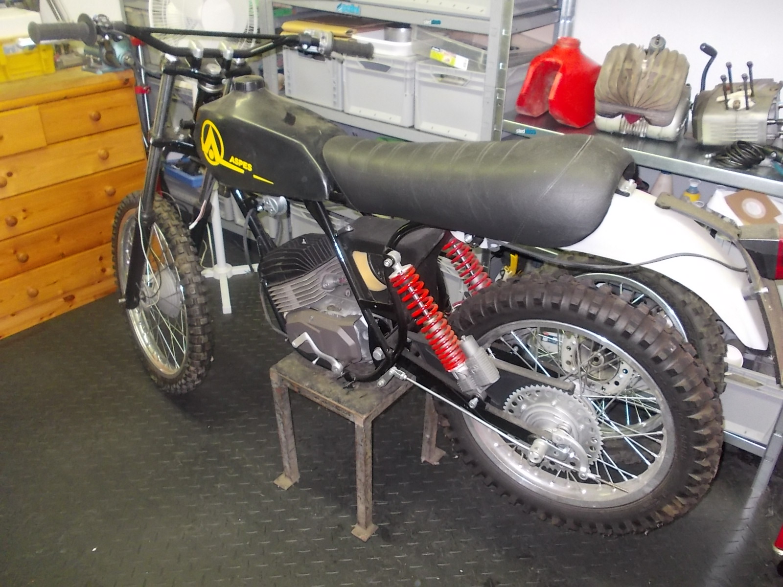 So das Hopi Projekt ist ja zu 99% fertig... da heisst es sich ans nächste Projekt geben. Ist ein vor längerer Zeit mal angefangenes Projekt einer 50er Spezial. Soll später genau so aussehen Der Motor ist bereits gemacht und in meinem Bastard getestet worden. Federbeine sind zwar neue C&C, aber nur für die Standard (345mm statt 360mm), muss ich wohl endlich meine Federbeinphase wieder aktivieren. Hier mal Bilder nach dem Reinschieben in die Werkstatt. Dateianhang: Dateianhang: Reifen sind NOS Metzler MotoCross Enduro, also Originalausstattung Der Tank ist ebenfalls NOS, da war noch nie Sprit drin. Die Räder sind schon komplett neu gemacht Kettenschutz ist auch NOS Kalle |
