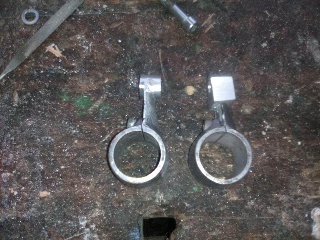 Ich hab in die Stummel jeweils beidseitig ein Loch mit 4er Gewinde gemacht, Gewindestift mit Loctite hochfest eingeklebt, volles Alu draufgedreht, auch mit Loctite. Und dann mittels Puksäge und Feile gewütet