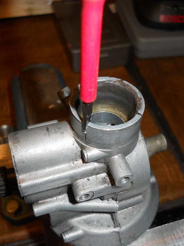 Erst mal Glückwunsch den seltenen Ansaugstutzen bekommen zu haben. Also ich würde auch nichts am Stutzen machen, denn der ist so wie es sein muss. Erstens gibt es unterschiedliche Kunststoffbuchsen und dann könnte es auch so sein wie du sagt, der Vergaser ist zu eng. Man sieht auch sehr gut, das der Vergaser oben links bei seinen "Beinchen" auf Block ist. Ich würde wie folgt vorgehen: Zuerst die Kunststoffbuchse ausbauen, auch da kann es schon notwendig sein, den Vergaser aufzubiegen. Das geht wirklich einfach mit nem Schraubenzieher den man sauber von vorne in den Schlitz klopft. Erst mal alle Schlitze auf die Spaltgröße wie auf dem Bild den unteren rechts bringen. Dann schauen ob die Buchse überhaupt auf den Stutzen geht, kann ja sein das der zuvor auf irgendeiner Vespa hing. Die Buchse kann man aufschmirgeln oder neu kaufen. Stein Dinse hat die glaube ich auch, meine hab ich immer auf der Veterama nach mitgenommenen Muster gekauft. Also keine Angst der Vergaser hält was aus, wenn man vorsichtig/sauber arbeitet Gruß Kalle |