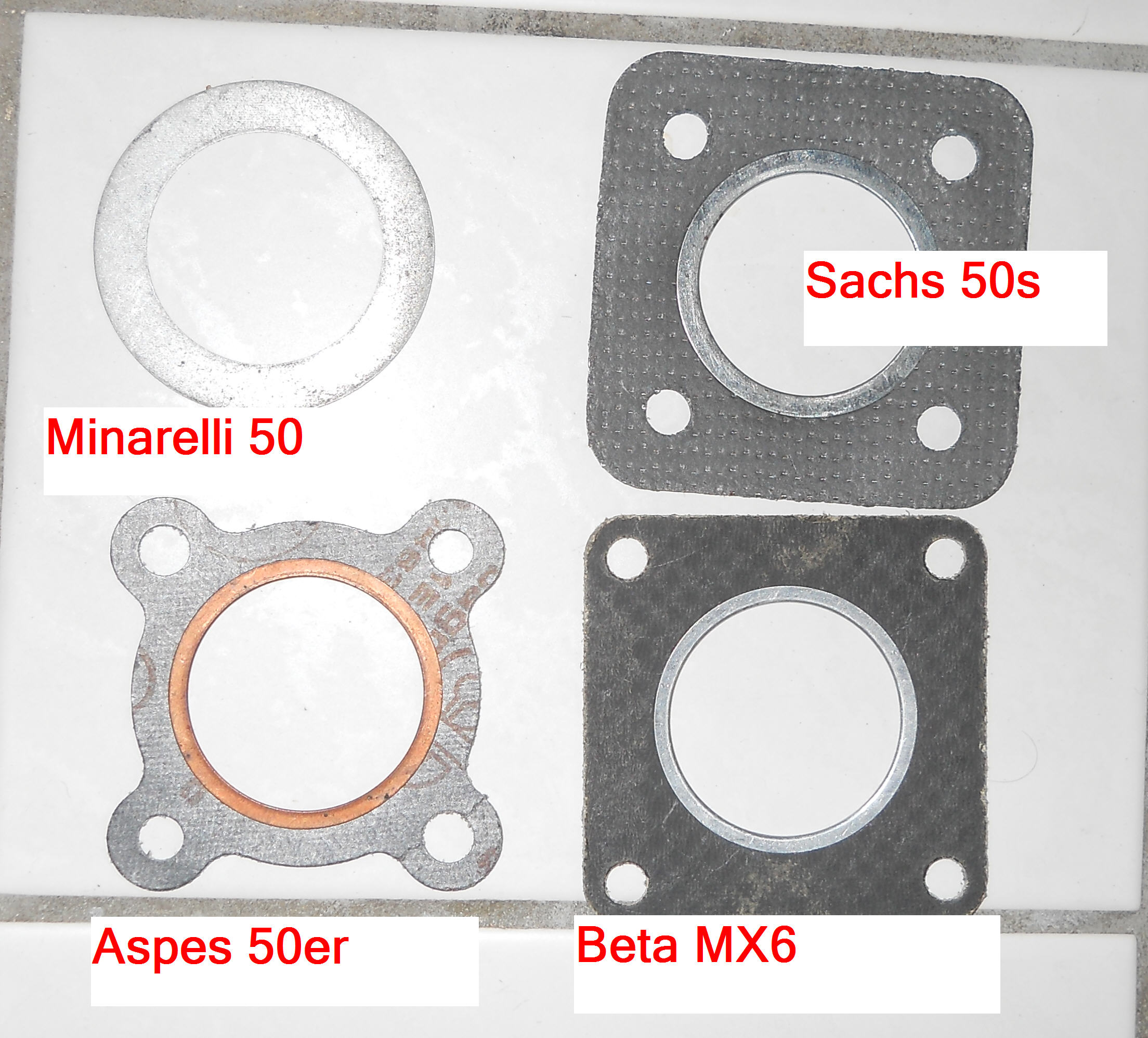 Die Kopfdichtungen für Aspes, Beta oder Sachs Motoren haben einen so Feuerring, die Minarelli ist ne platte Aludichtung.