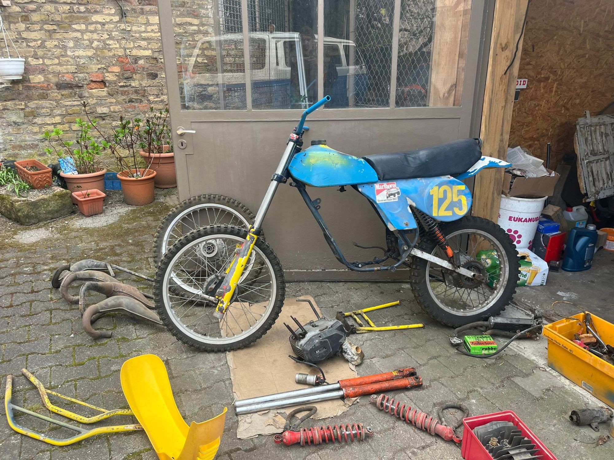 Zur Aspes habe ich außerdem einen zerlegten, nicht vollständigen Motor, ein 32 mm Marzocchi Fahrwerk und diverse Kleinteile dazu bekommen.