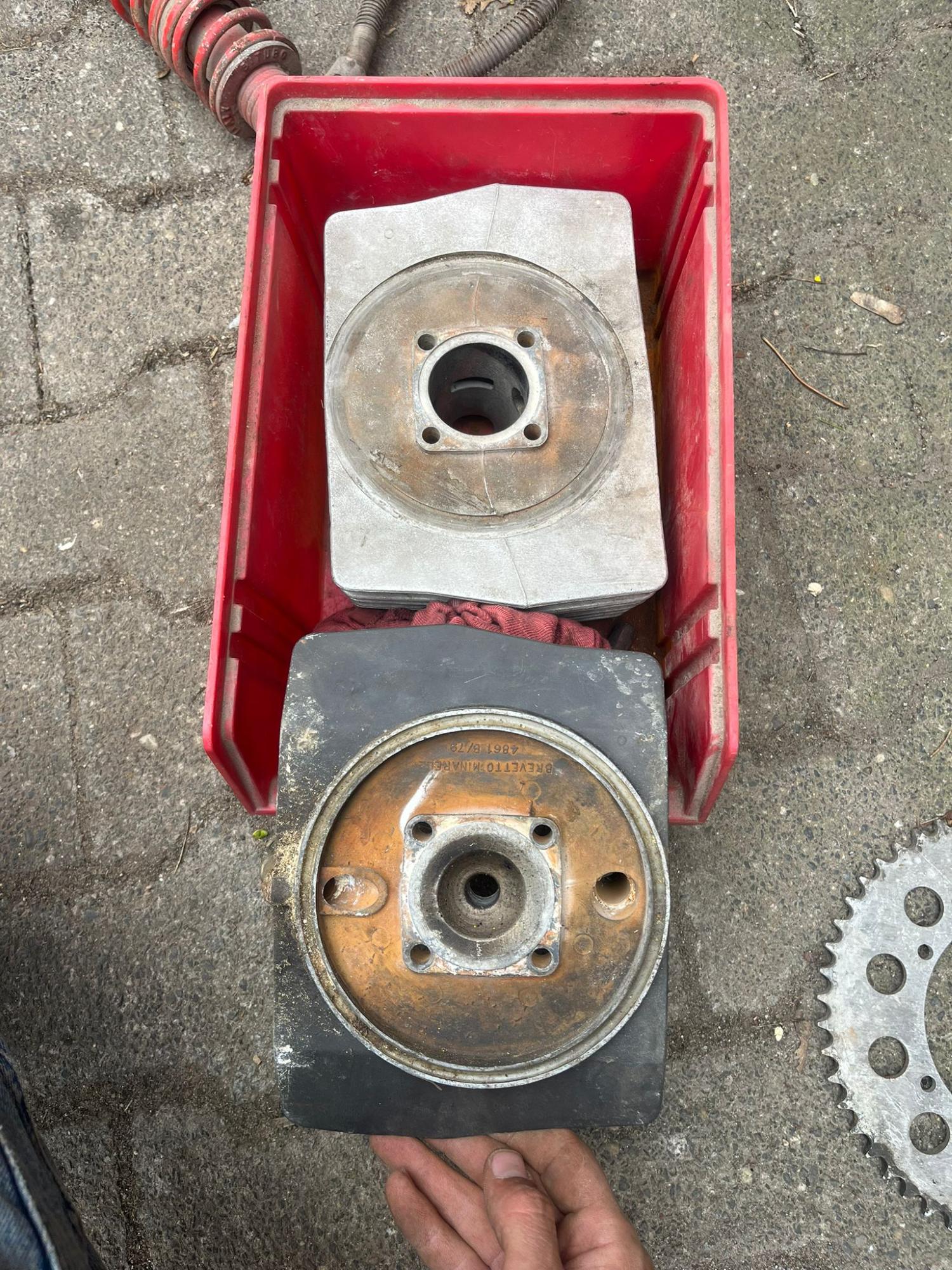 Gestern habe ich den originalen 80ccm Motor zerlegt. Mein Plan war, das Getriebe und alle anderen Teile in das andere (intakte) Gehäuse einzubauen, da dieses keinerlei Ausbrüche oder Beschädigungen aufweist. Beim Vergleich der Motoren sind mir jedoch ein paar Unterschiede aufgefallen: