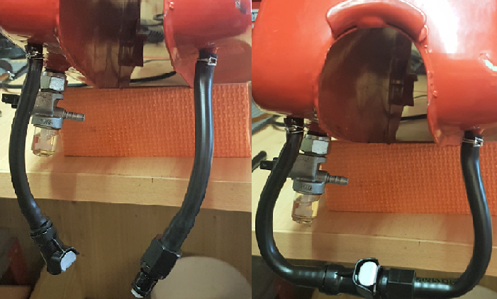 Mit niedriger Drehzahl und bestmöglicher Beachtung des Winkels dann vorsichtig auf 8,5mm aufgebohrt. Ja, ich war in diesem Moment nicht der glücklichste Mensch, an meinen aktuell einzigen eisatzfähigen Motor rumzubohren. Aber nachdem ich alle Spähne weggesaugt und ausgeblasen hatte, sah es doch ganz ordentlich aus: