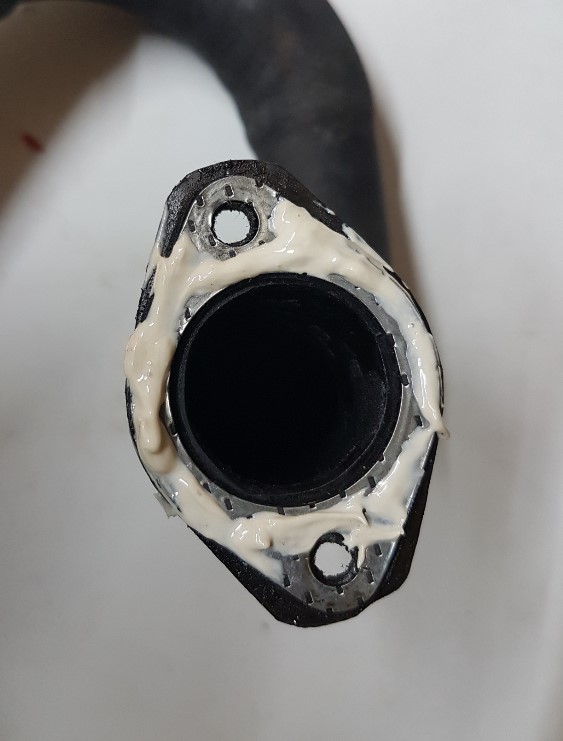 Ich bin begeistert. Auf der Tube steht, dass es durch die Auspuffhitze selbst aushärtet. Hab es aber mit dem Heißluftföhn gemacht, weil ich Bedenken hatte, dass der Abgasdruck die Paste vorher rausbläst. Jedenfalls ist die Beta jetzt dicht und sauber.