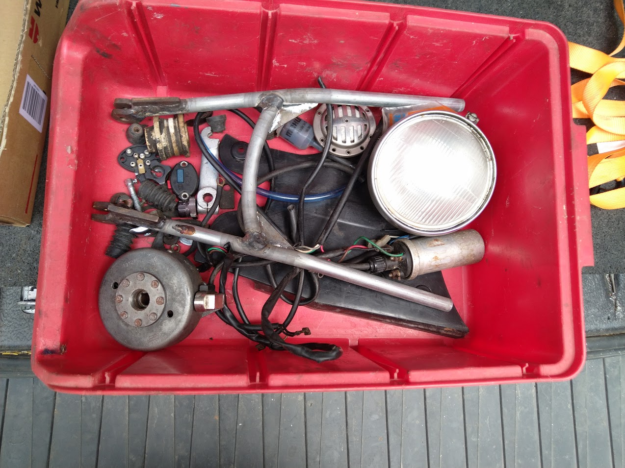Luftfiltergummi, Züge, Auspuff (den habe ich ja), Endstück (baue ich mir von der Aspes eins um) und 7-14 Schrauben.....!