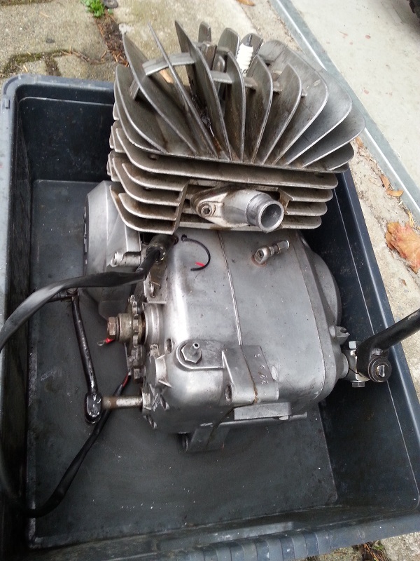 Der Motor läuft, hat aber ein Geräusch aus dem Bereich Kurbelwelle / Pleuel. Deshalb starte ich meinen Bericht auch mit dem Motor. Der ist zum Teil schon zerlegt.
