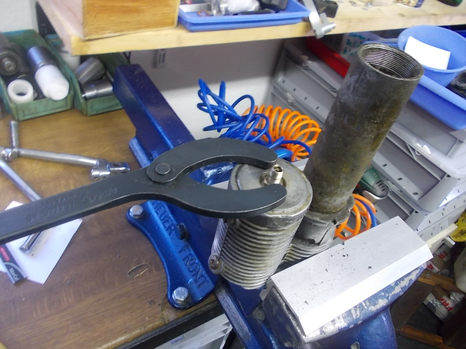 Mit den neuen 10,0mm Halter „versucht“ den Kopf von der Kolbenstange abzuschrauben, Fehlanzeige