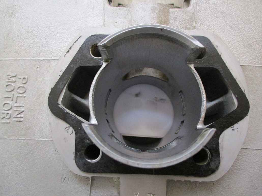 Fantic hat beide Überströmkanäle etwa gleich groß. Bei Polini ist der hintere deutlich kleiner.