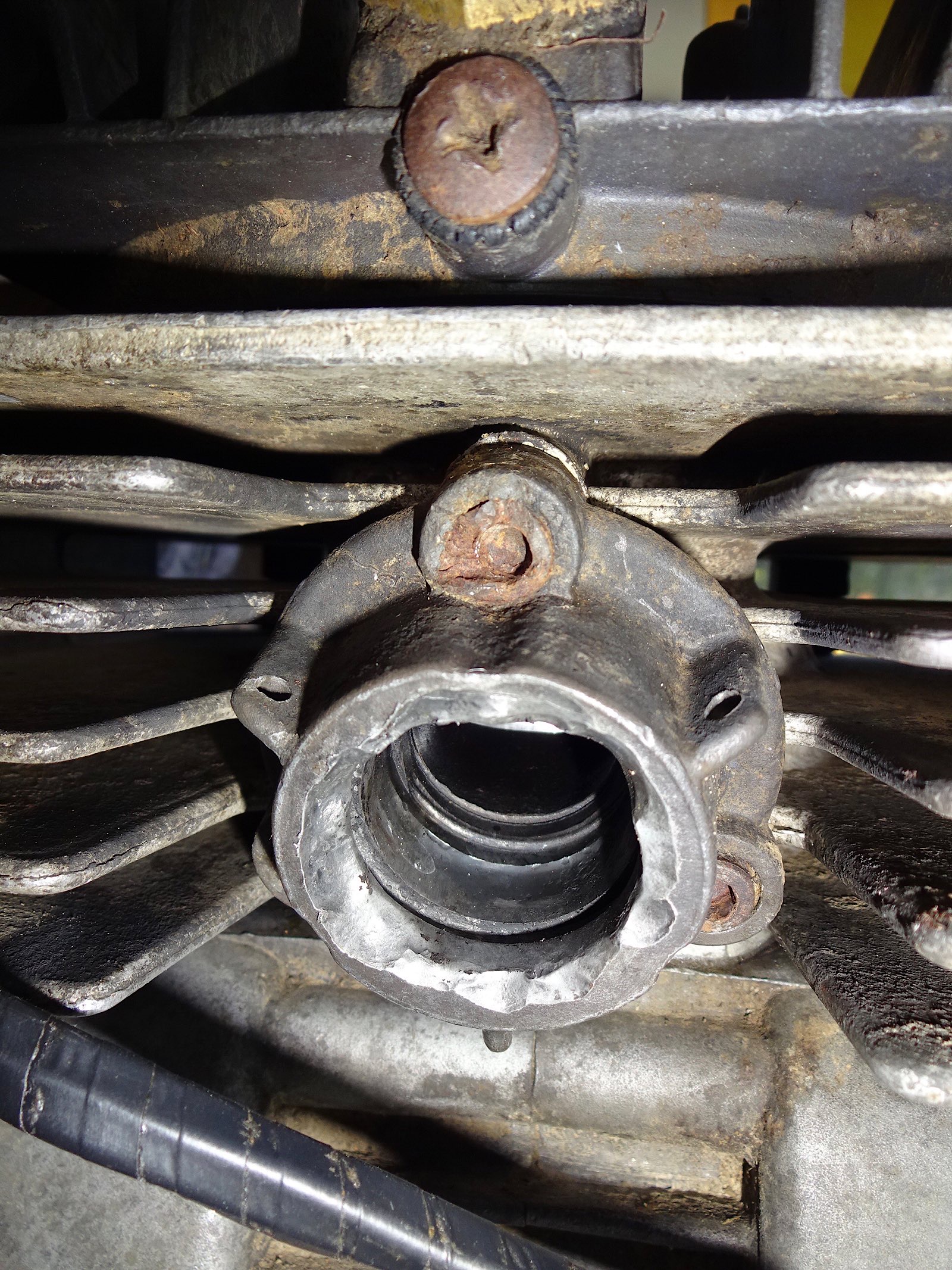 Richtig Zeit hat mich die vordere Spannhülse gekostet, war ja von Anfang an vermurkst (siehe Bild oben). Weder Wärme etc. half nicht, also musste zweimal die Buchse mit der Puksäge zersägt werden. Trotzdem ging alles noch schwer raus, hat mich mehr wie ne Viertelstunde gekostet das Ding.