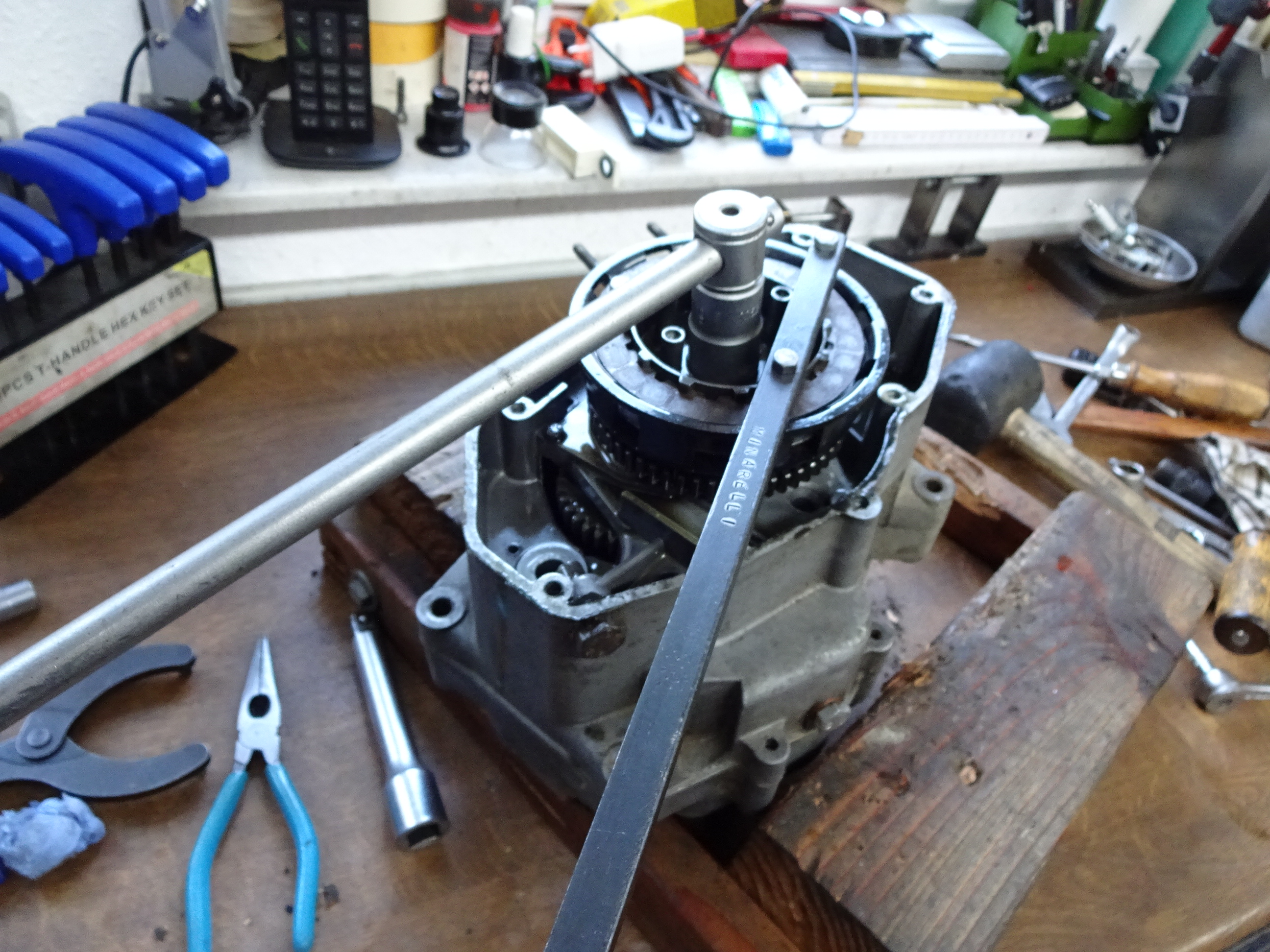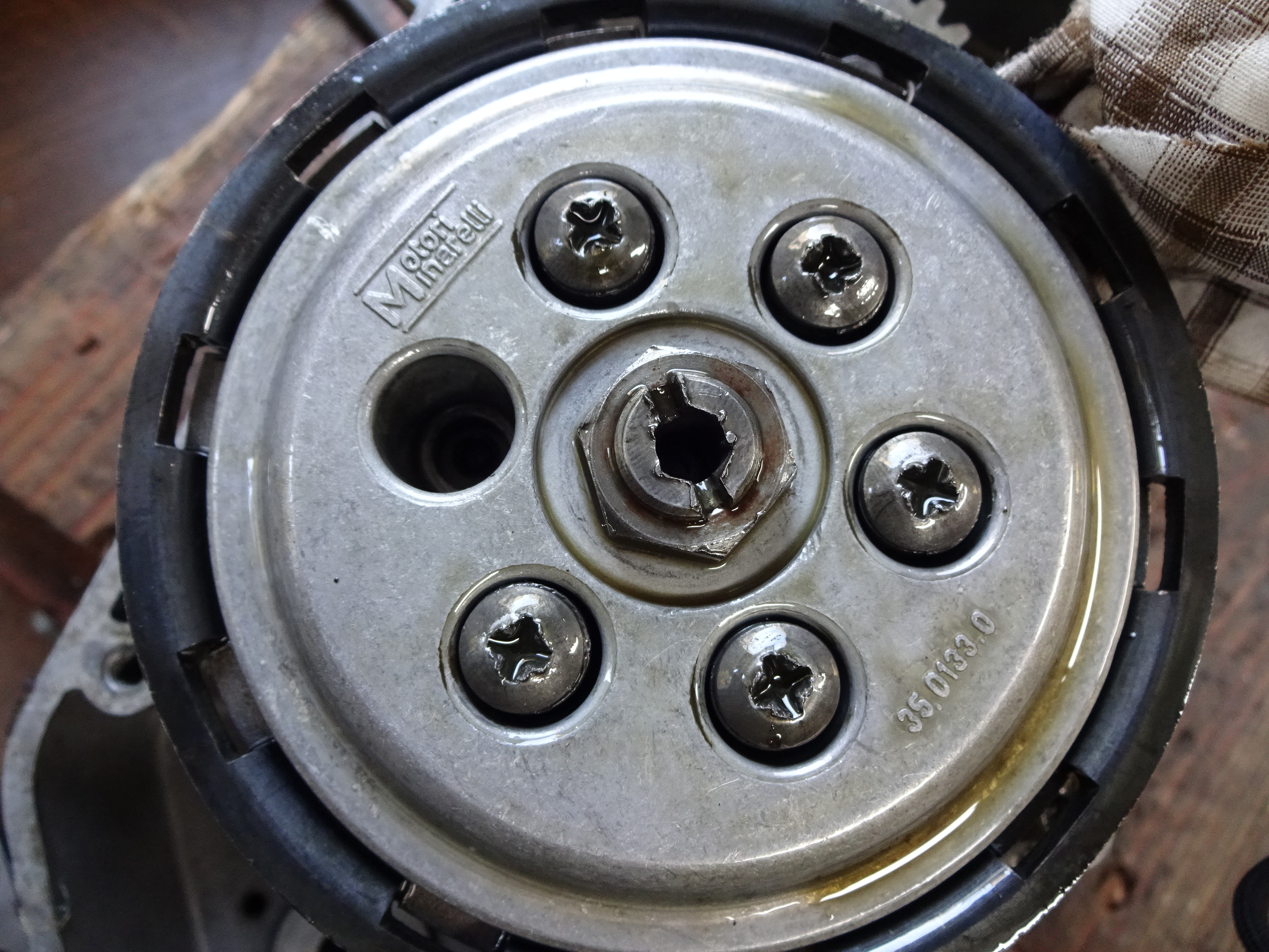 Das riesige Primärzahnrad ging mit dem Minarelliabzieher (gefunden in Novegro, 7 Euro