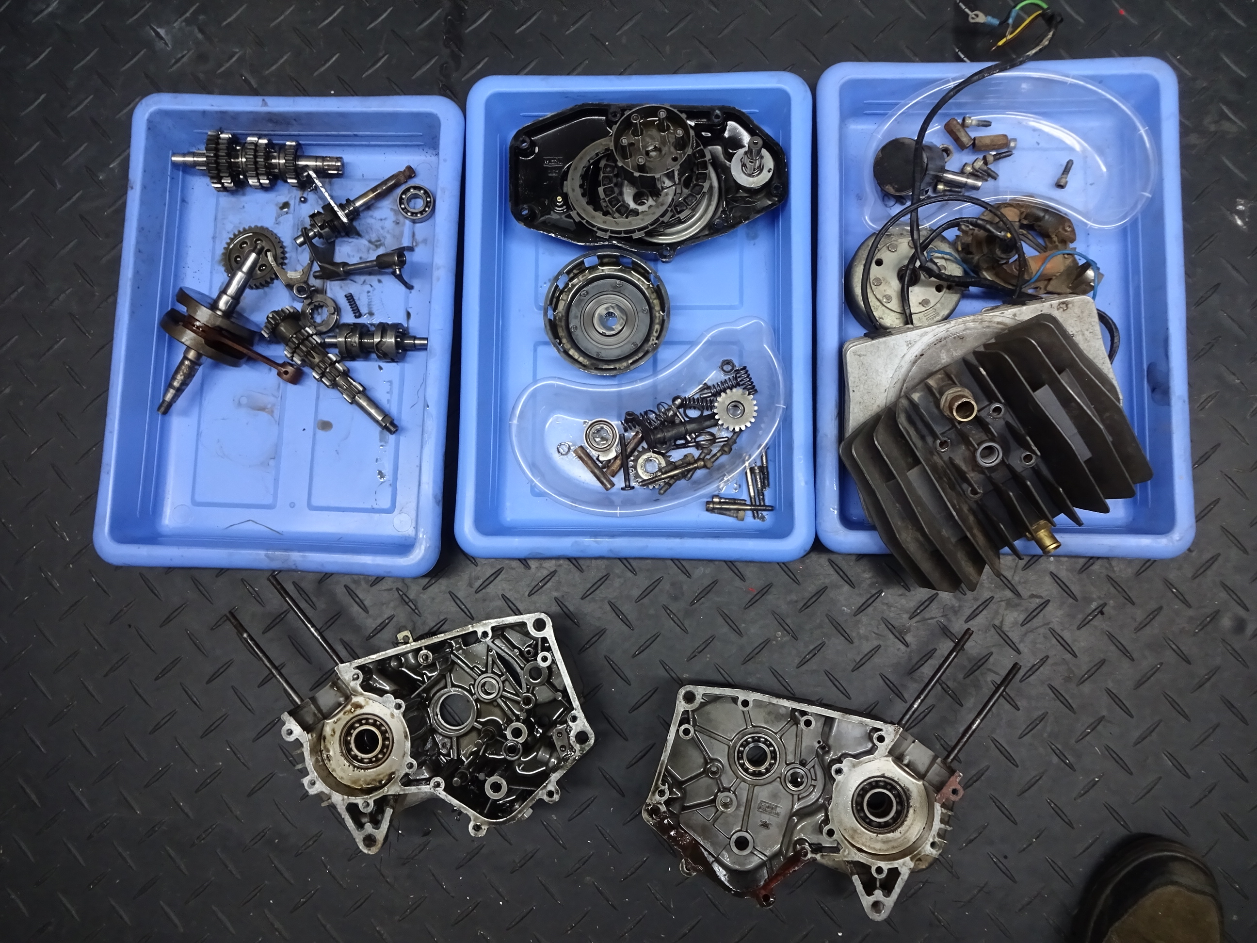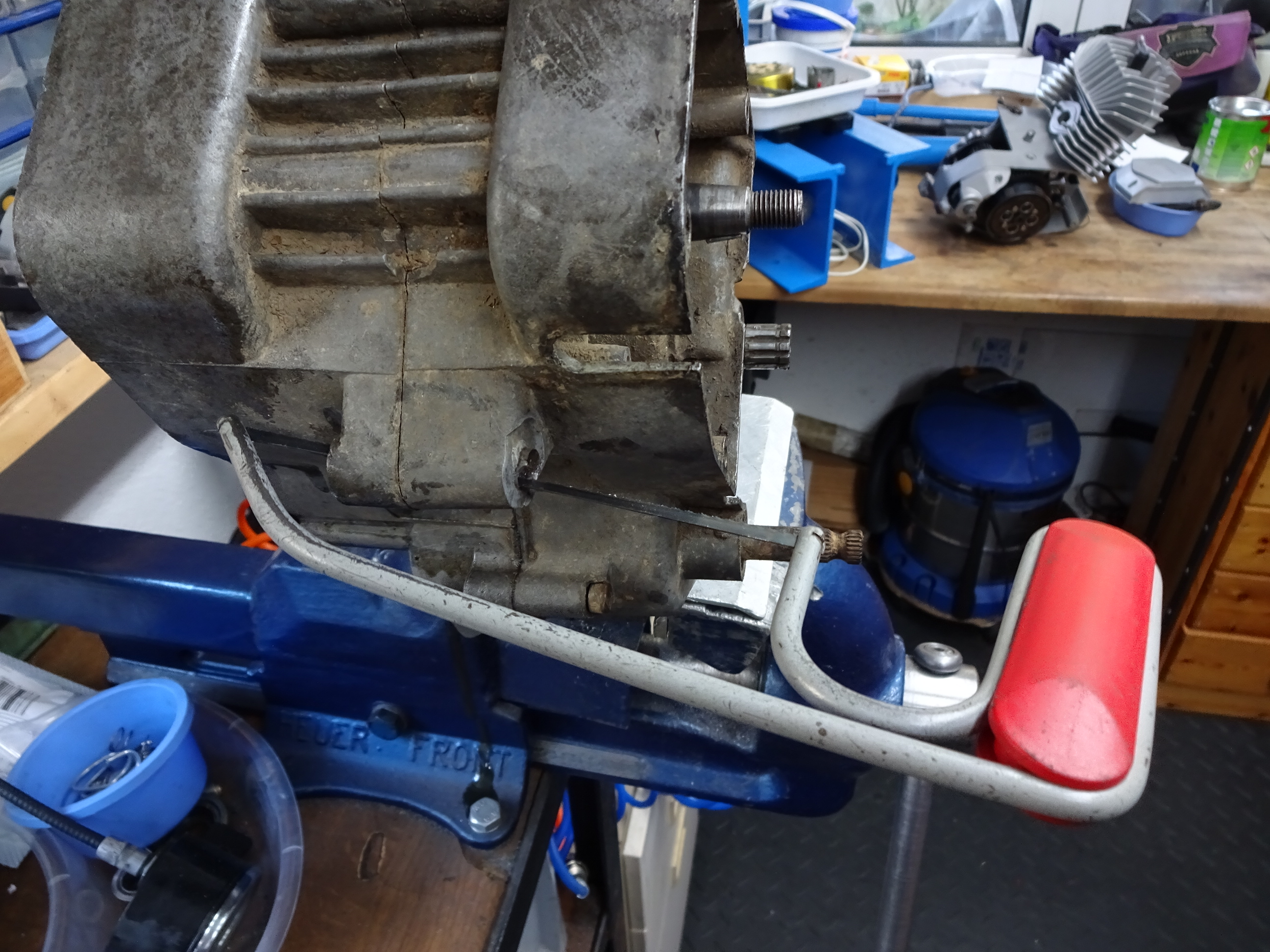 Kupplung ist die Drosselprimärübersetzung drin 20/57, damit geht überhaupt nichts. Sollte auf 16/61 geändert werden. Innenläufer hat ne Buchse verloren inkl. Schrauben und Feder, ist