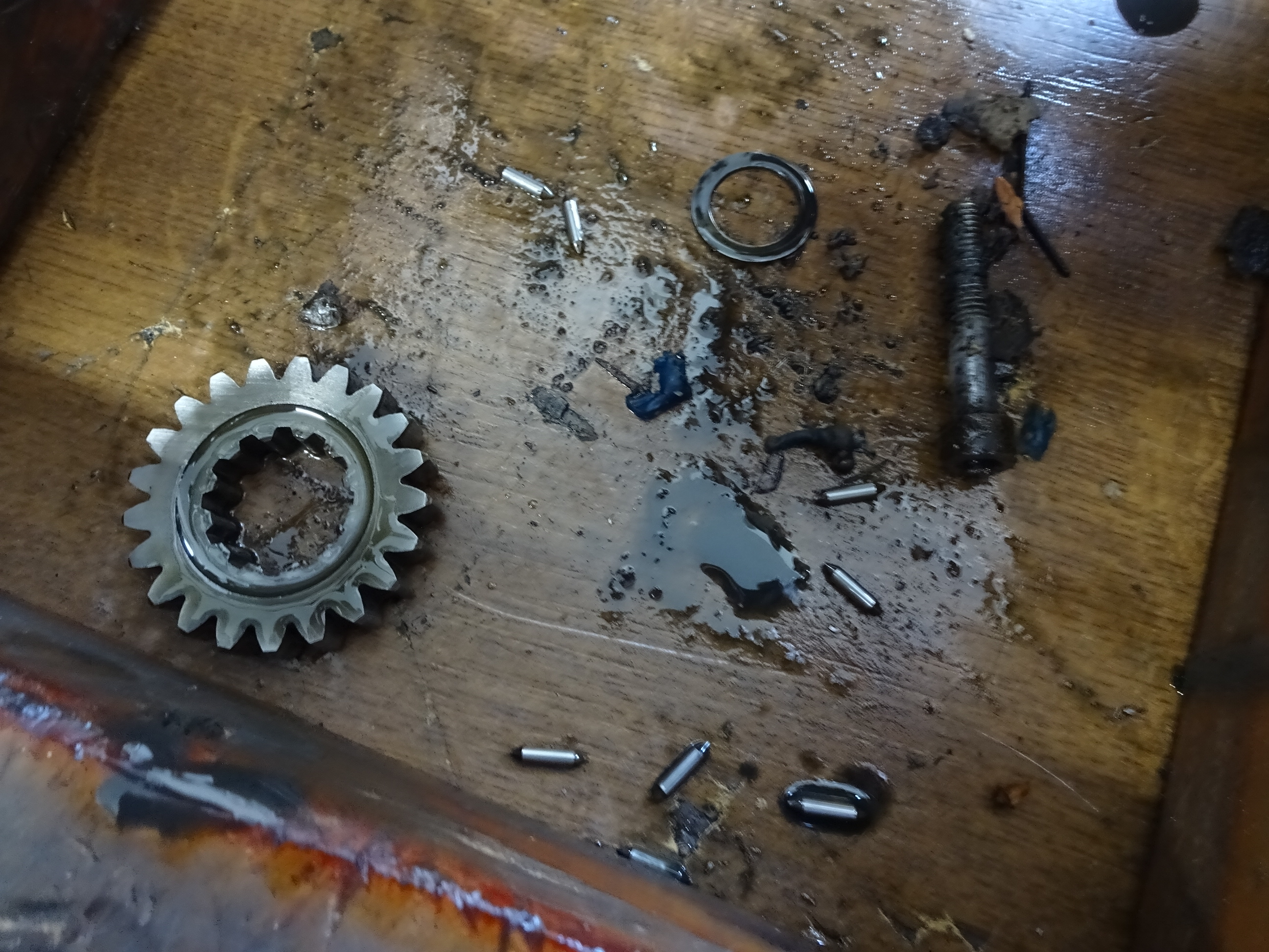Das Getriebe selbst hat leichte Pittingspuren an den Zahnrädern, kann man aber noch gut verwenden. Wäre ne Weltumrundung angesagt, würde ich es aber vorher wechseln