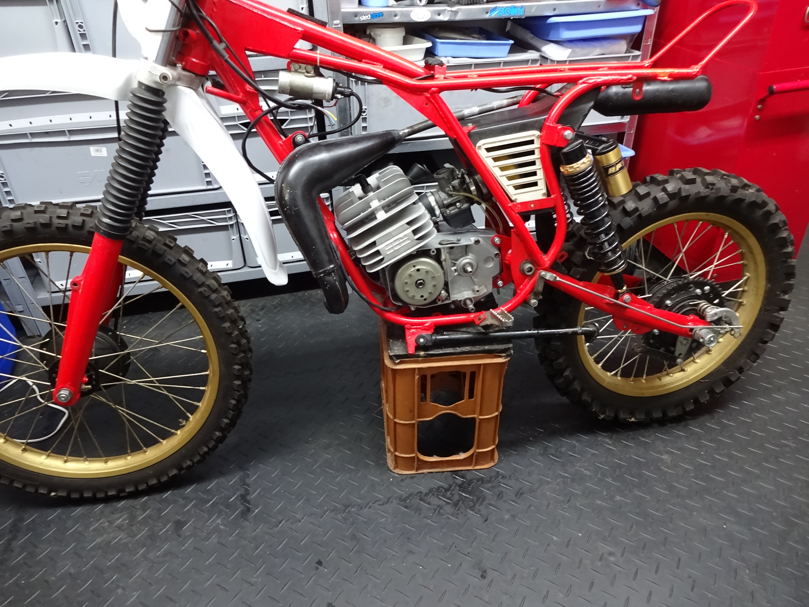 Benutze den Bastard immer als Motorenprüfstand. Hier mal ein altes Bild mit Akront Alufelgen und 80er Motor.