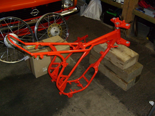 Sicher ne Menge Arbeit gewesen den Rahmen so hin zubekommen,aber wenn du später mit dem Teil fahren möchtest und nicht ständig nachpinselen willst gehört der Rahmen mit feinem Sand gestrahlt und gepulvert.Zumindest die Ecken und un dann noch mal über alles leich drübergestrahlt,das kostet dann auch nicht mehr viel.Der Sprühlack blättert bei jedem Steinchen ab,auch wenn du noch so gut vorarbeitest,das kann ich dir versichern.