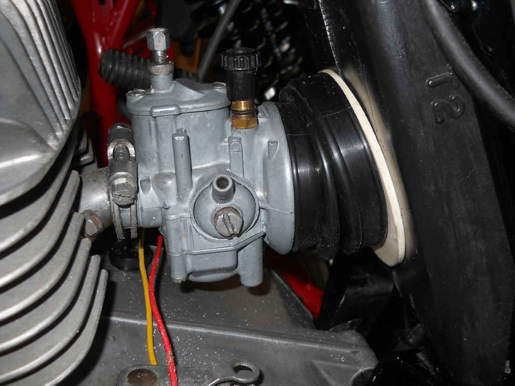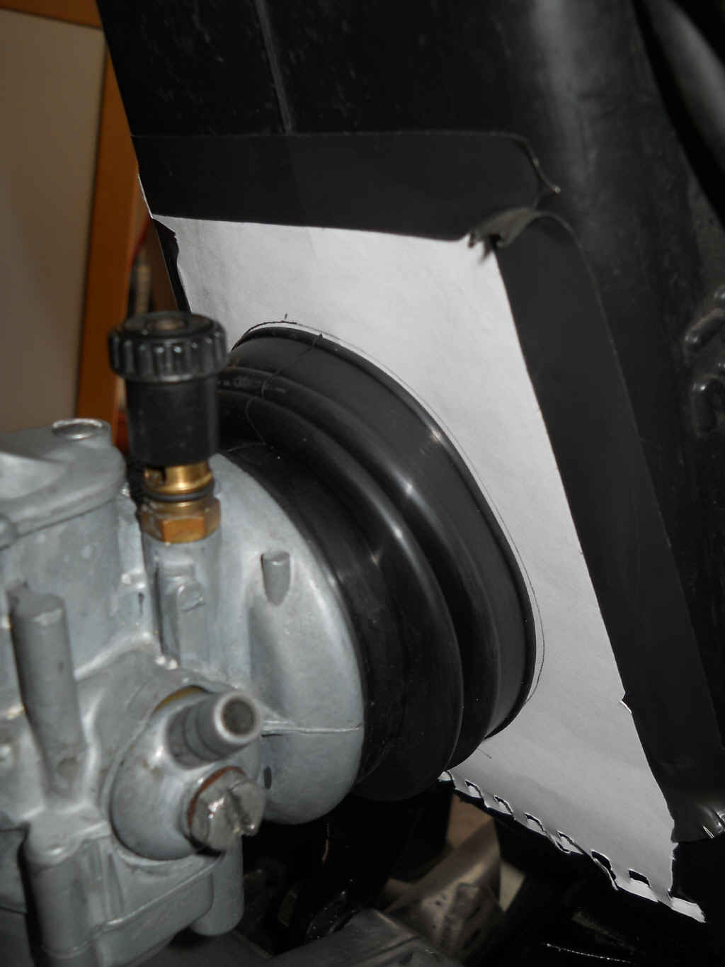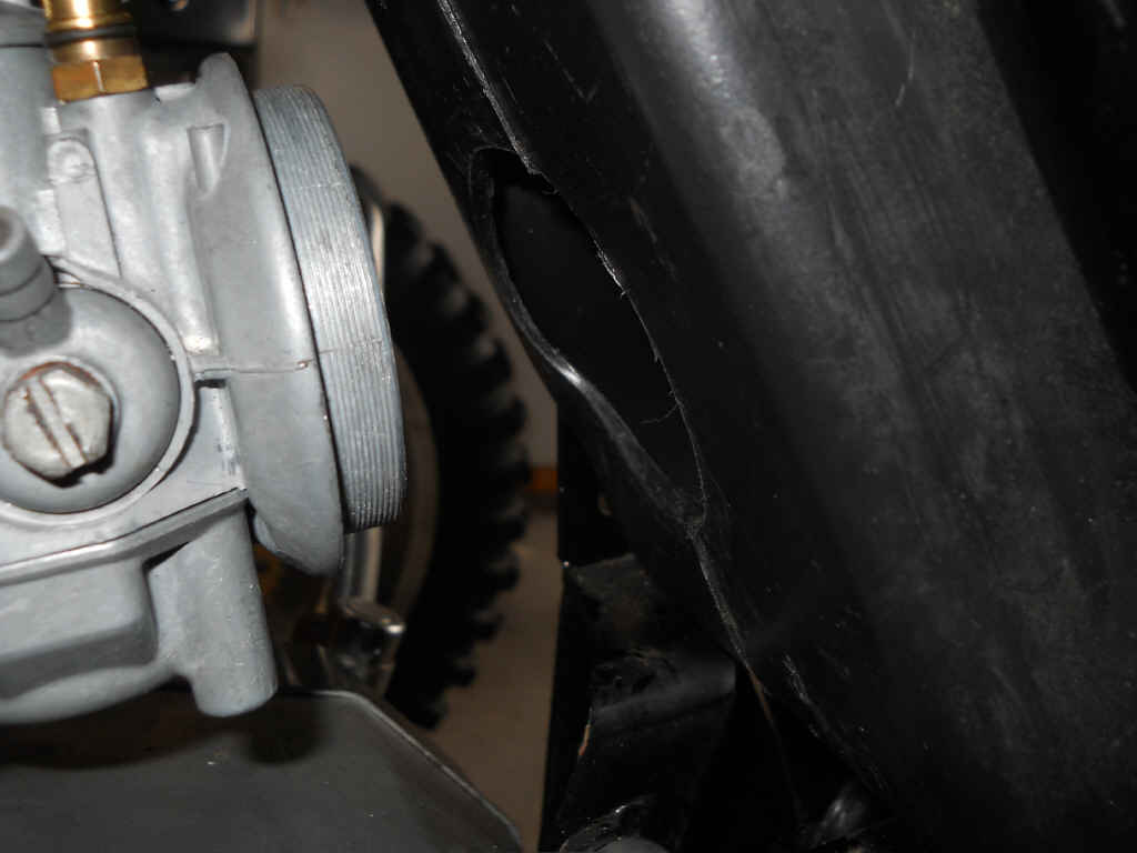 Man kann klar sehen, dass die beiden Kreise (Vergaseranschluß und Öffnung im Luftfilterkasten) überhaupt nicht fluchten.