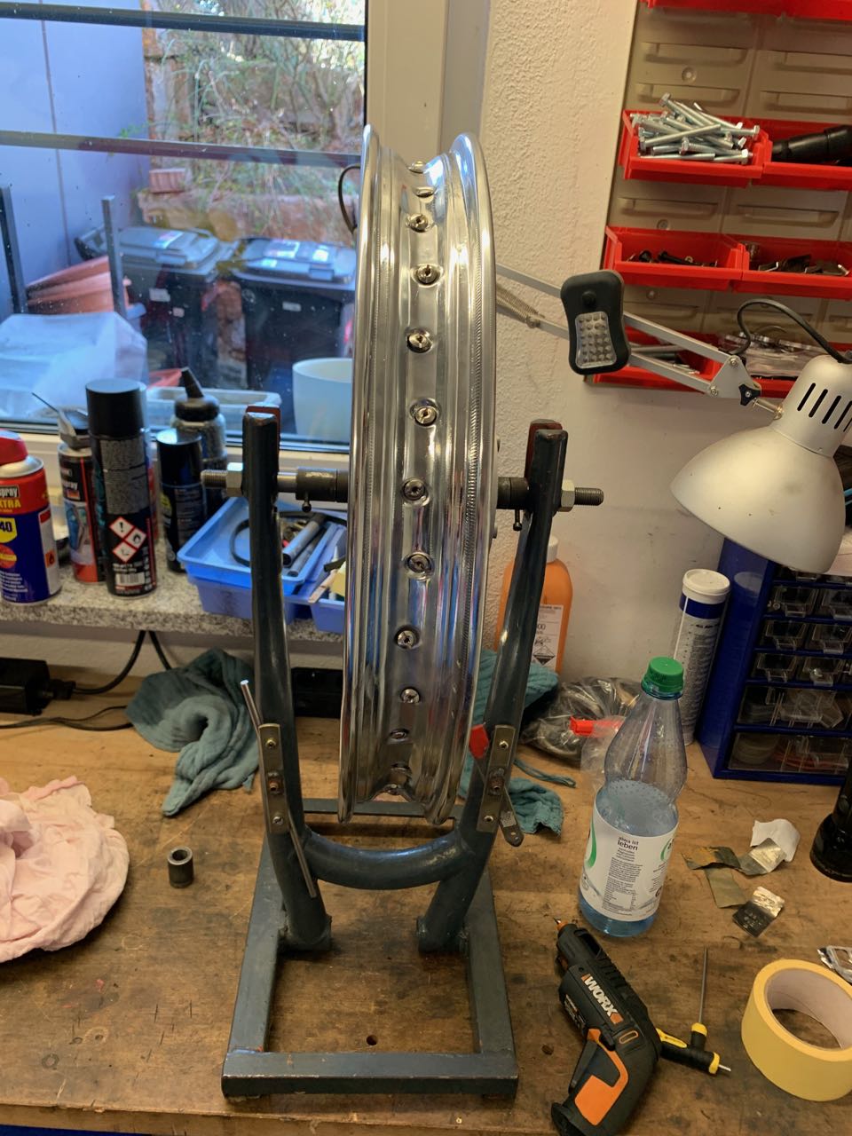 Dass Korrigieren des Höhenschlags und das Zentrieren ging dann besser als gedacht, vielleicht weil es eine 18 Zoll Felge war. Man wird schon etwas manisch dabei, weil man immer wieder versucht, den einen oder anderen Millimeter zu verbessern.