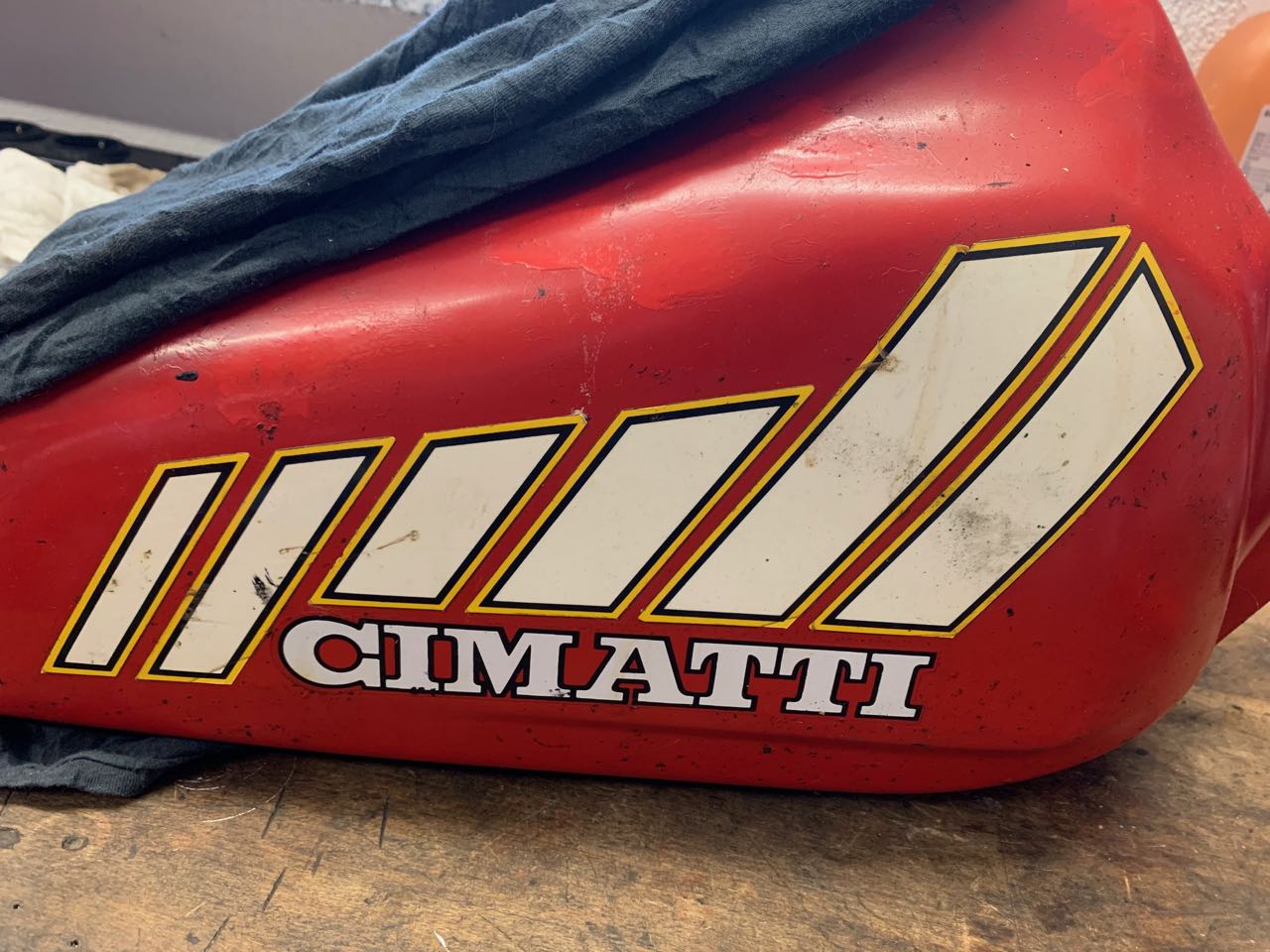 Beide Felgen waren nun endlich fertig, Metzeler Six Days mit Schläuchen bestellt, die Reifen sind zwar etwas overstyled, aber der Reifen gefällt mir optisch besser als der Conti , zumal auf der Cimatti früher richtig grobstollige Pirelli`s verbaut waren, die es heute leider nicht mehr gibt.