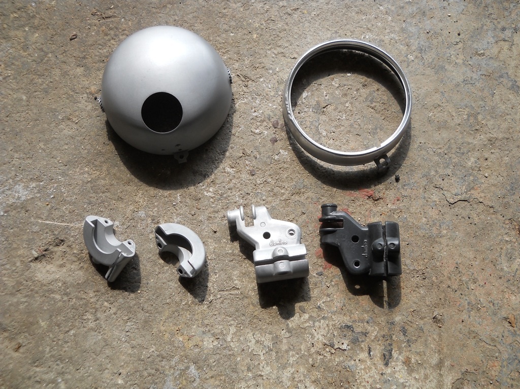 Jetzt war ich über Ostern wieder in der alten Heimat und überlegte was ich dort denn so bastelt könnte. Da es zu aber kalt und ungemütlich für Werkstatt war, nam ich einfach mal mir die Felgen für die Horex mit zum Zentrieren. Hatte schon vorher die Naben mal gesandstrahlt und pulvern, sowie die Speichen neu verzinken lassen. Da die originalen Felgen billig direkt auf den Strahl verchromt waren, taugten die (so verrostet wie die waren) nur noch für die Tonne. Hatte aber noch die Felgenringe von einer zweiten Cimatti Kaiman 25, die finde ich passen als Akront in Gold sogar viel besser zum Horex Design.