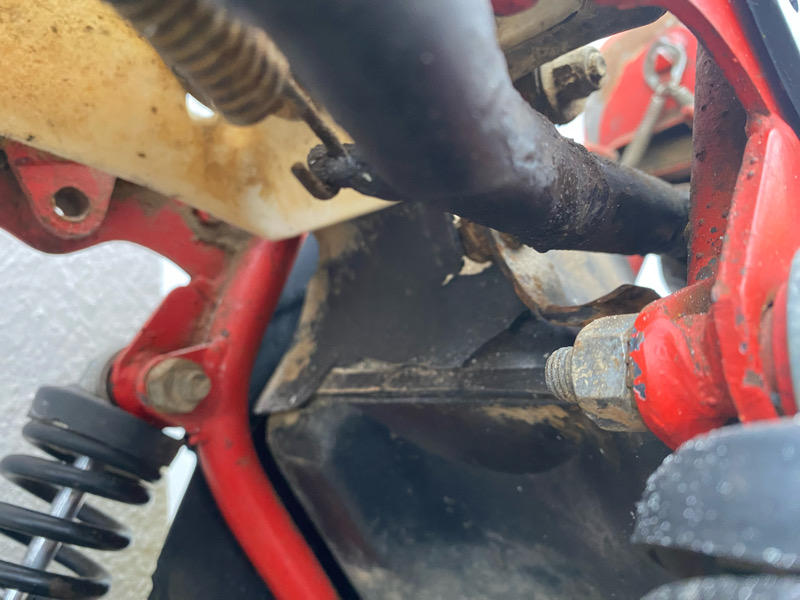Hinter die Seitenteile habe ich noch nicht geschaut wegen des Luftfilterkastens. Das Gummi zwischen Vergaser und Lufi-Kasten fehlt.