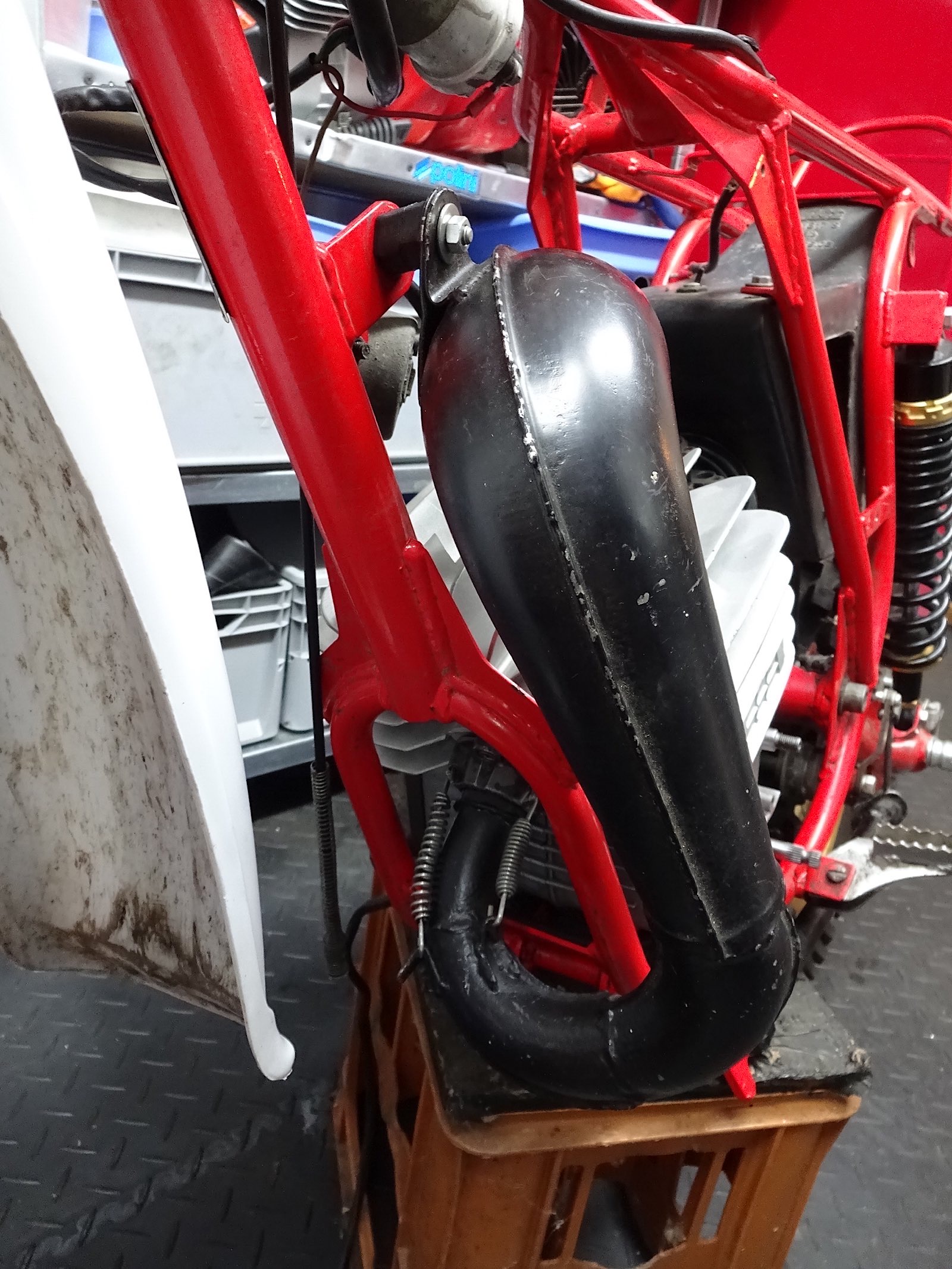 So der Bastard bekommt mal wieder nen neuen Testmotor, den mit dem Simonini CCM Zylinder Mal ein wenig entstaubt den guten Bastard und die China (Federbein) Kracher verbaut. Dateianhang: Dateianhang: Dabei überlegt welchen Krümmer nehm ich denn Dabei kam mir ein 20 Euro Novegro Krümmer ins Hirn (wohl für ne Fantic FM 238 gewesen?.). Und siehe da, der hat die gleiche Birne wie der Polini bzw. FM380 Krümmer Dateianhang: OK ein wenig muss ich wohl da noch anpassen, sonst wird das nichts mit dem Simonini Zylinder Dateianhang: Kalle |
