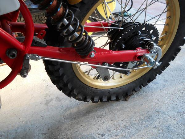 Hab hier an meiner "Spass Aspes" (50er für Rennen gedacht mit 80er Schwinge für Geradeauslauf, aber Rückdämpfer Hinterrad) zwecks dosiertem Bremsen eine Zugstange angebracht