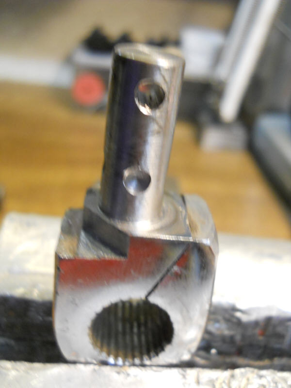 Jetzt wieder die Bohrungen für die Feder und Kugel im Kickstarteroberteil eingebracht, sowie die Arretierbohrungen im Bolzen des Unterteils passende zum Linksbetrieb angebracht.