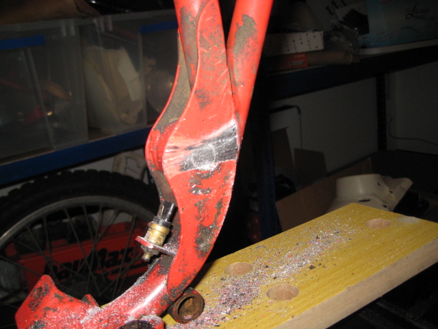So jetzt muss du sauber einen Körnerpunkt in die Mitte setzen und immer größer werdend aufbohren. Ich denke die Aprilia hatte auch ein Gewinde M14x1,5 (Bitte an die Aprilia Spezis um Korrektur wenn ich da falsch liege). Damit wäre der Kernlochdurchmesser 12,5mm, bei Handbohrmaschine würde ich aber mich über 11,5 und 12,0 mm rantasten.