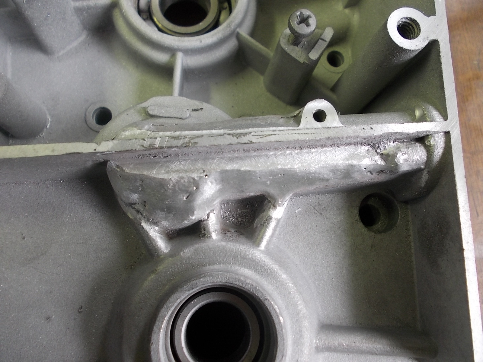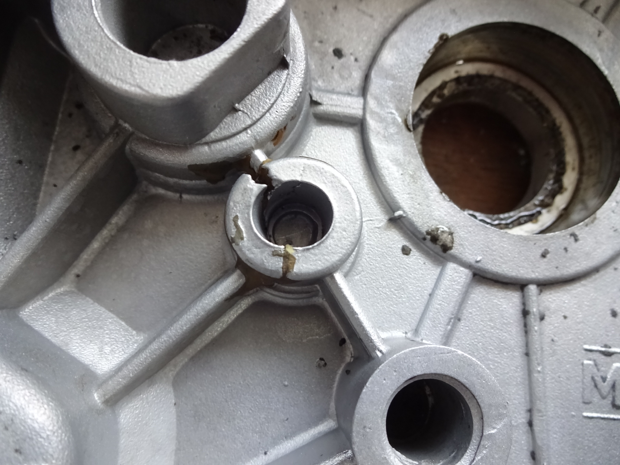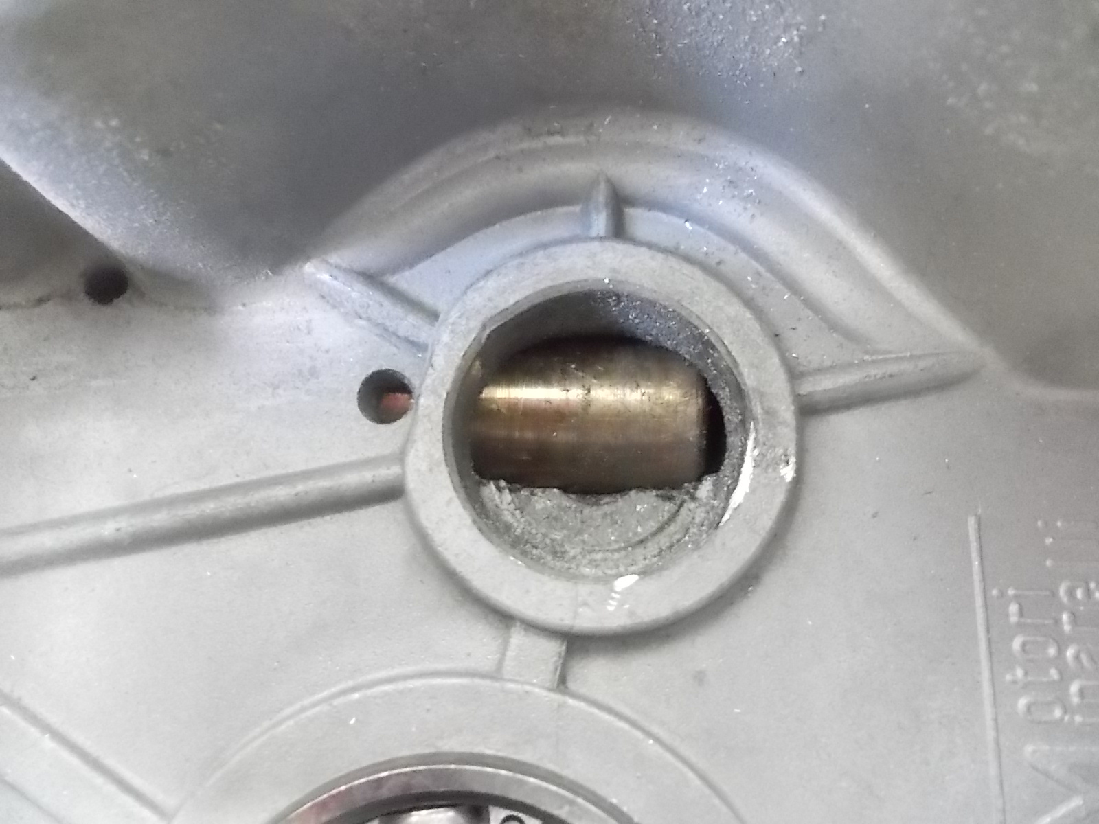 Ein wenig verputzt das Ganze und jetzt ist die Achse für die Schaltgabeln wieder geführt.