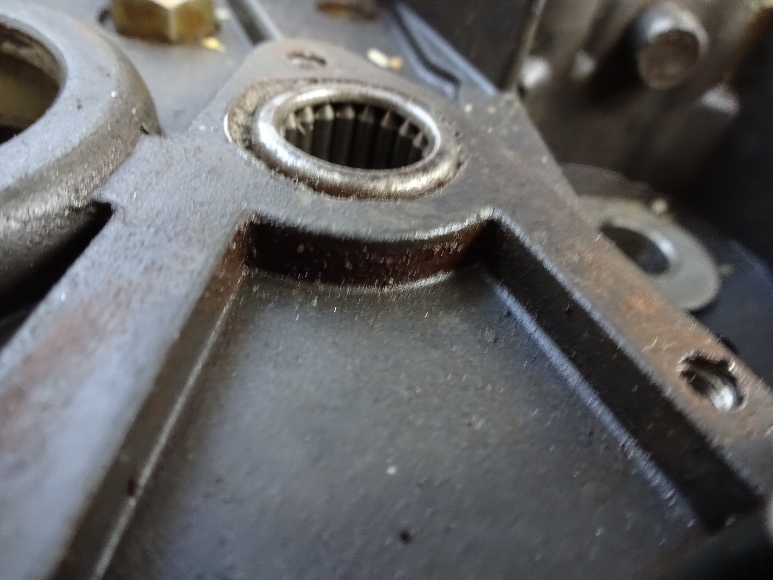 Man kann schön sehen, wie das Lager nach hinten gekloppt wurde und den Sitz raus gesprengt hat.