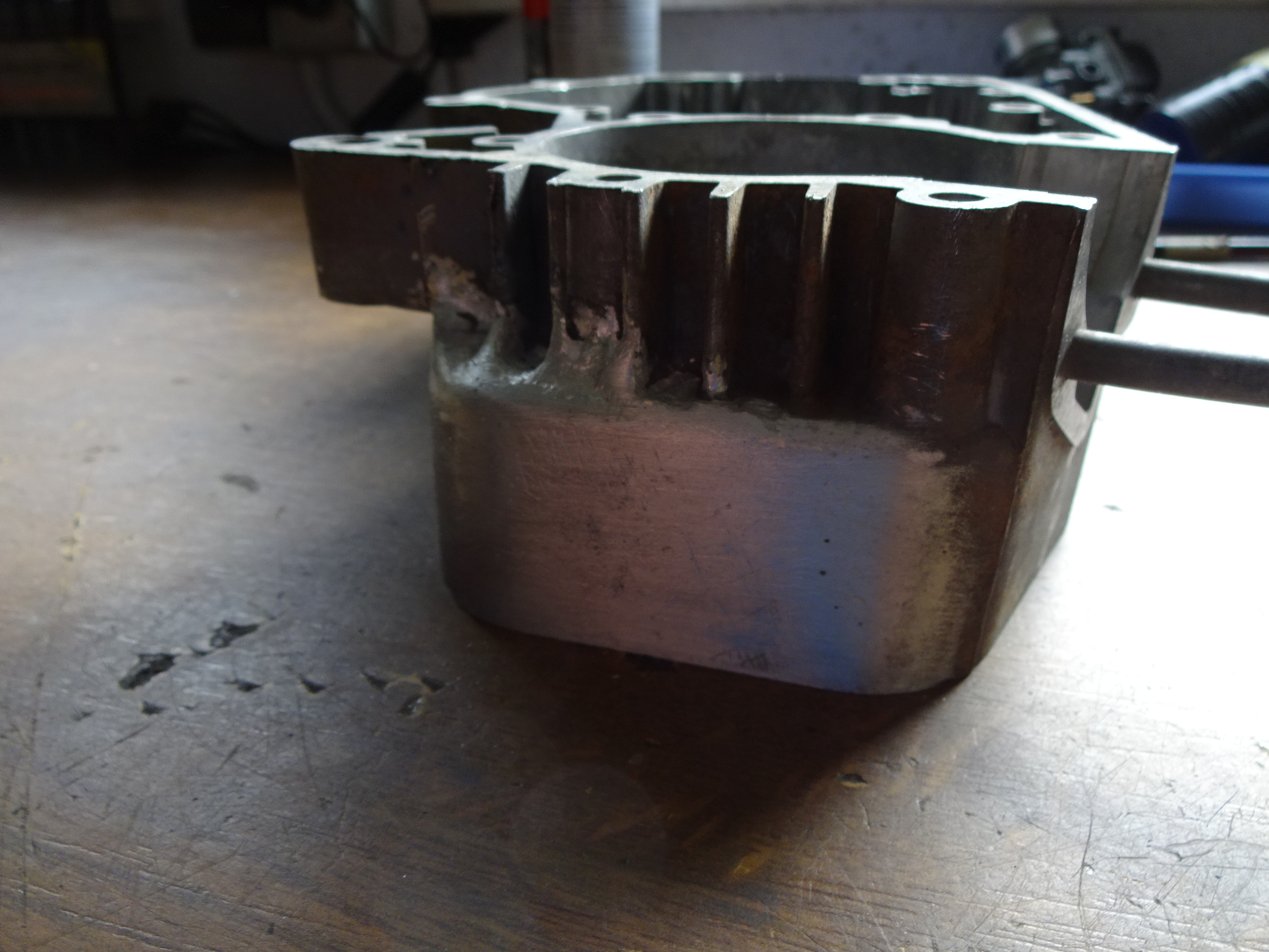 Musste bis auf 12mm ausfräsen, damit ich überhaupt ne saubere Bohrung bekomme. Da kommt jetzt ein Gewinde rein, damit ein Alustopfen rein geschraubt werde kann, der später noch verschweisst wird.