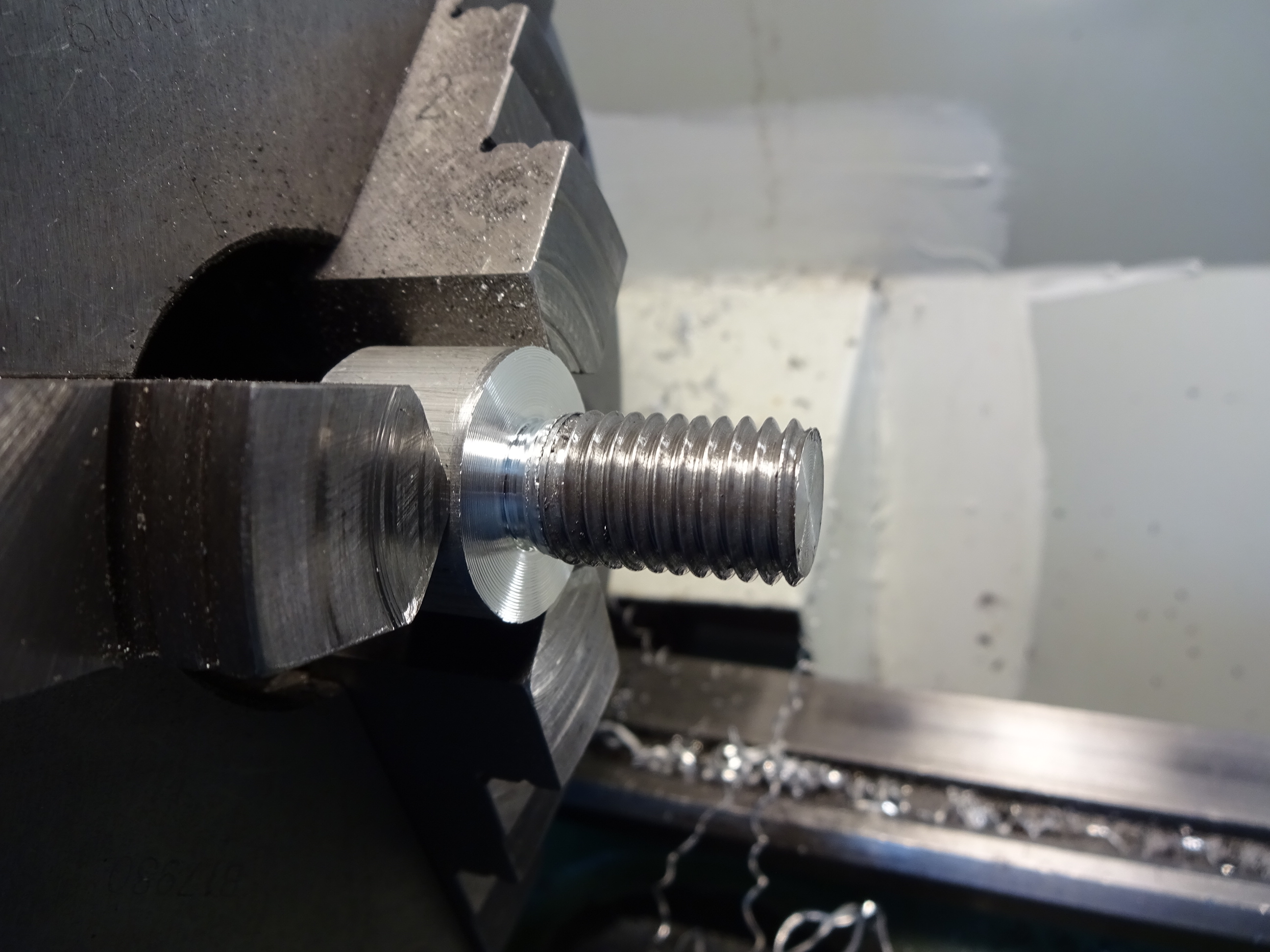 Erst mal den Alustopfen erstellt, eingeschraubt, abgesägt und fürs Schweissen vorbereitet.