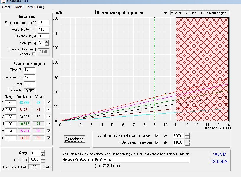 Jetzt gehen wir mal von Drehzahlen 13.000 U/min aus, dann läuft eine Aspes mit Regolarita 2 dann auch ihre 89 km/h