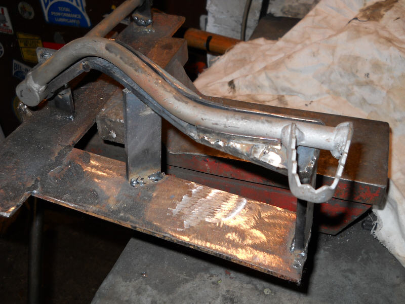 Da habe ich mir mittels einem noch recht guten Hebel, eine Schweiß- und Biegelehre zusammengeschweißt.