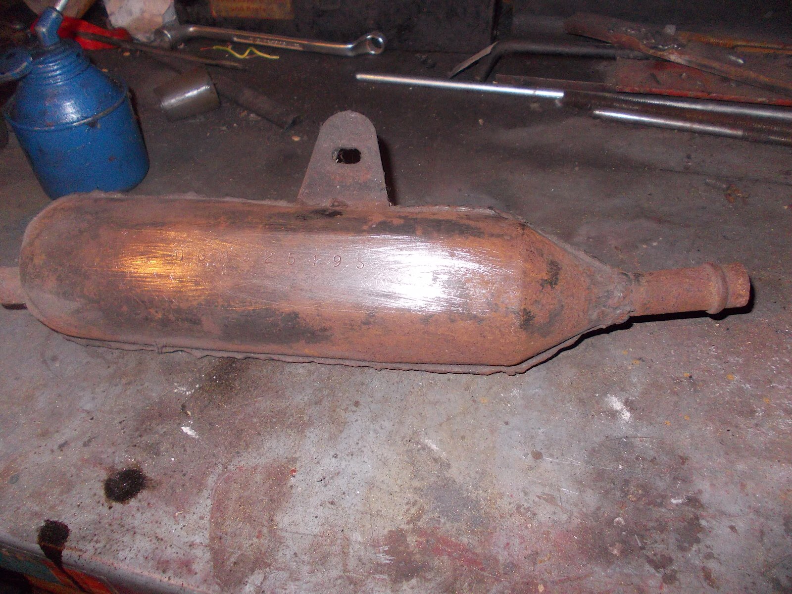 So mal heute Vormittag 1,5 Std. gesandstrahl und auch das Beta Endstück gesäubert. Die Bleche sind ohne Delle, lediglich der Halter ist leicht nach innen gedrückt. Heiss machen und ziehen, dann passt das sofort wieder.
