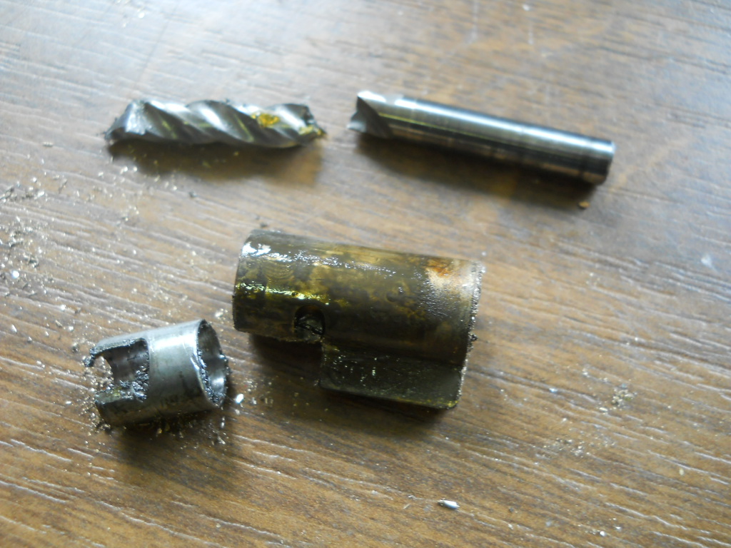 . Klar war die dünne Buchse drückt sich im 1/10tel Bereich durch das Reinklopfen zusammen, muss also wieder aufgebohrt werden. Besser wäre es dies dannn mit ner Reibahle zu machen, hatte aber keine passende. Also passenden Bohrer nehmen, hab ja diese im 0,1mm Abstufung von 1 bis 13mm. Nur bohrt eben ein 11,7mm Bohrer kein 11,7mm Loch sondern größer, speziell beim Freihandbohren mit der Handbohrmaschine. So hatte ich nachher dann ein 11.9mm Loch und der Hebel wackelte unnötig in der Buchse. War jetzt nicht so viel das man es neu machen musste, aber nicht wirklich toll. Dadurch gefrustet, waren die Gedanken nicht mehr ganz bei der Sache und es ging los.