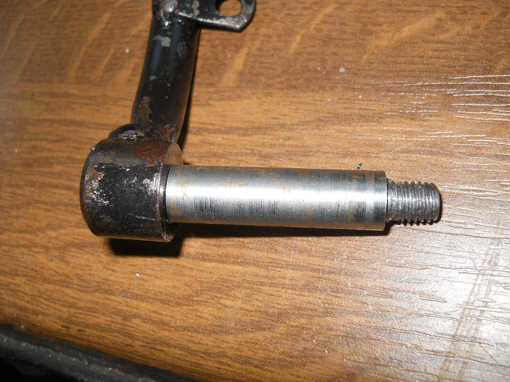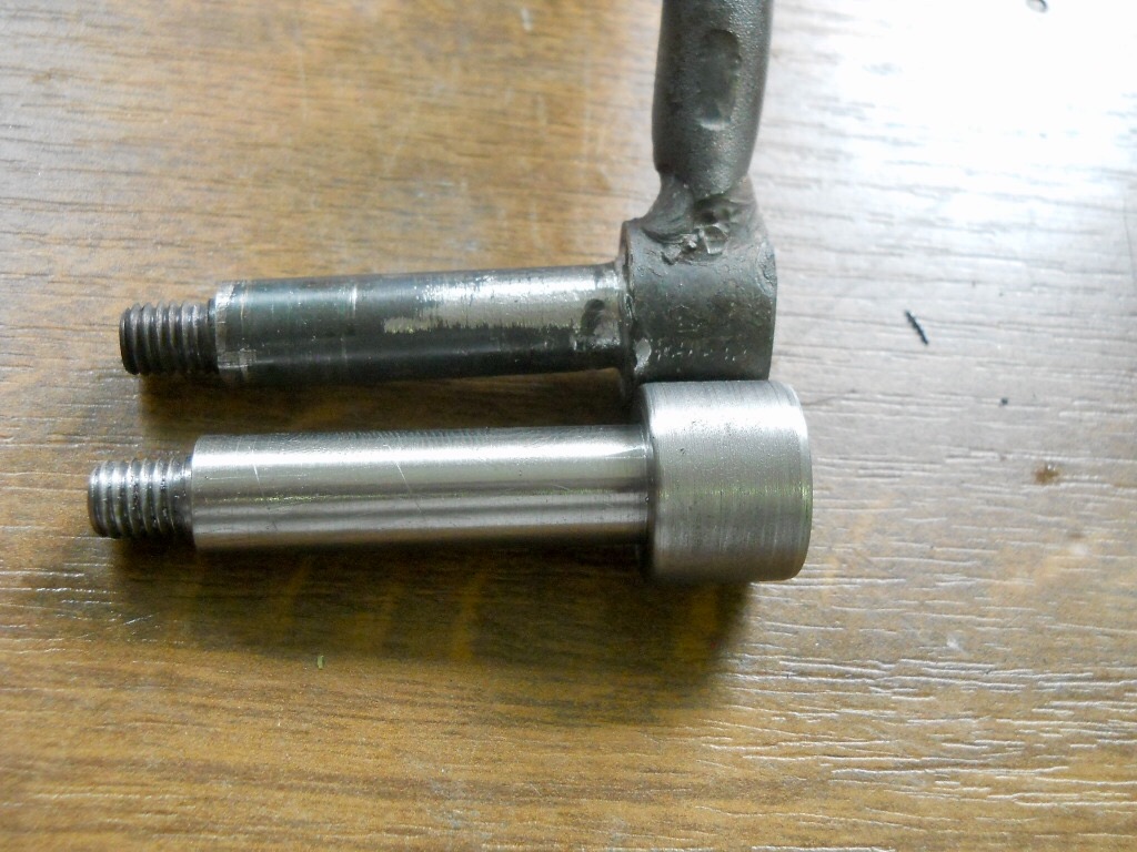 Jetzt erst mal einen kompletten Bolzen gedreht, an dem dann gleich der Bremshebelarm im richtigen Winkel angeschweisst wird. Da ich den Bolzen jetzt passed zu Bohrung in der Buchse gedreht und geschliffen habe, ist da so gut wie kein Spiel drin. Ein wenig schon, muss sich ja drehen können.