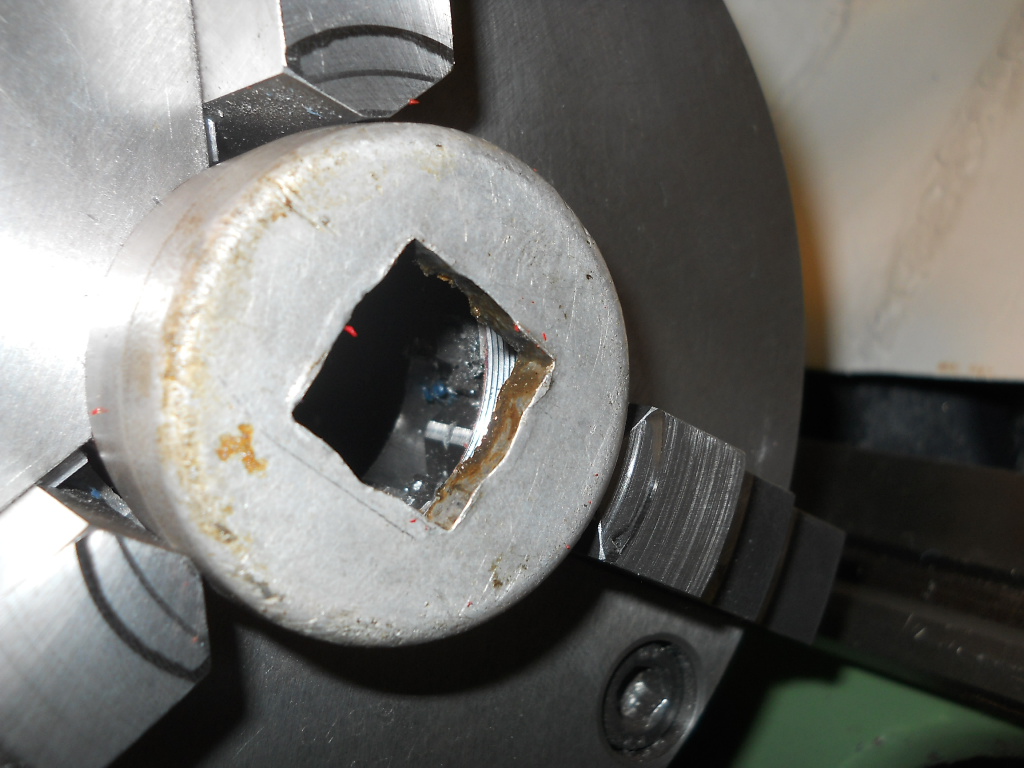 Die Buchse hatte ich noch schön gedreht, die Bohrung passend aufgebohrt und die Buchse reingeklopft.