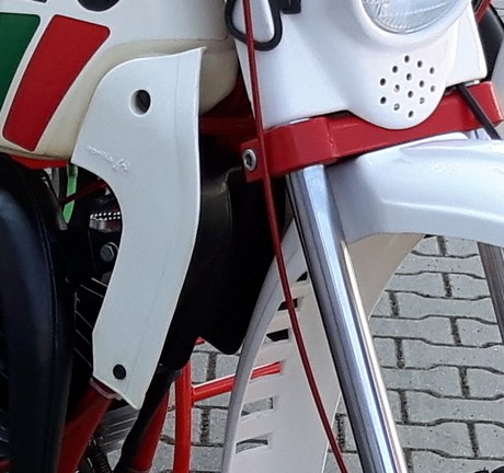 wenn man die RX50 weiss anschaut sieht man deutlich dass die kühlerverkl. nur oben verschraubt sind - und unten am wasserkühler wie bei RX 80 SW am kühler befestigt sind - sie ist wassergekühlt.