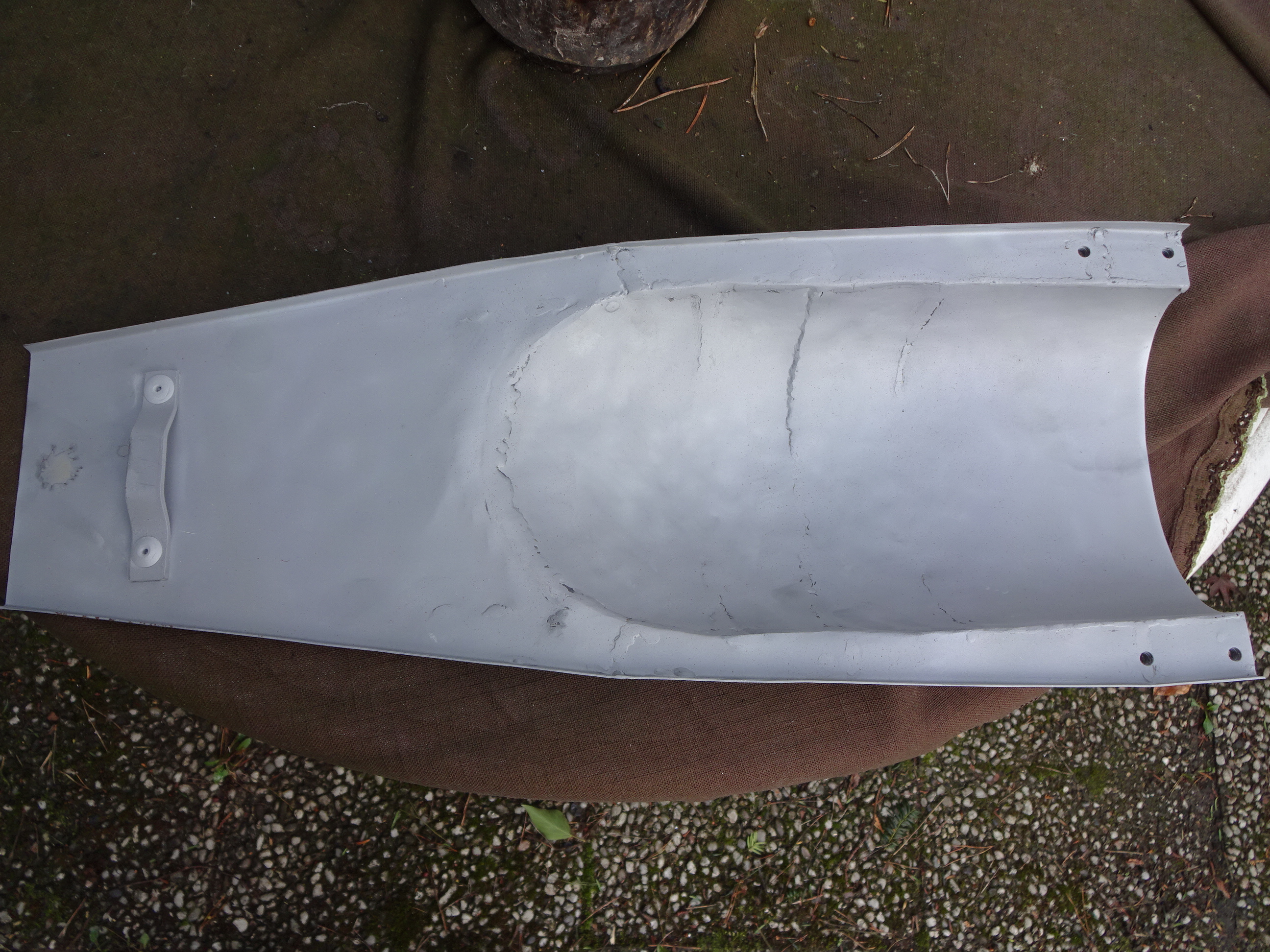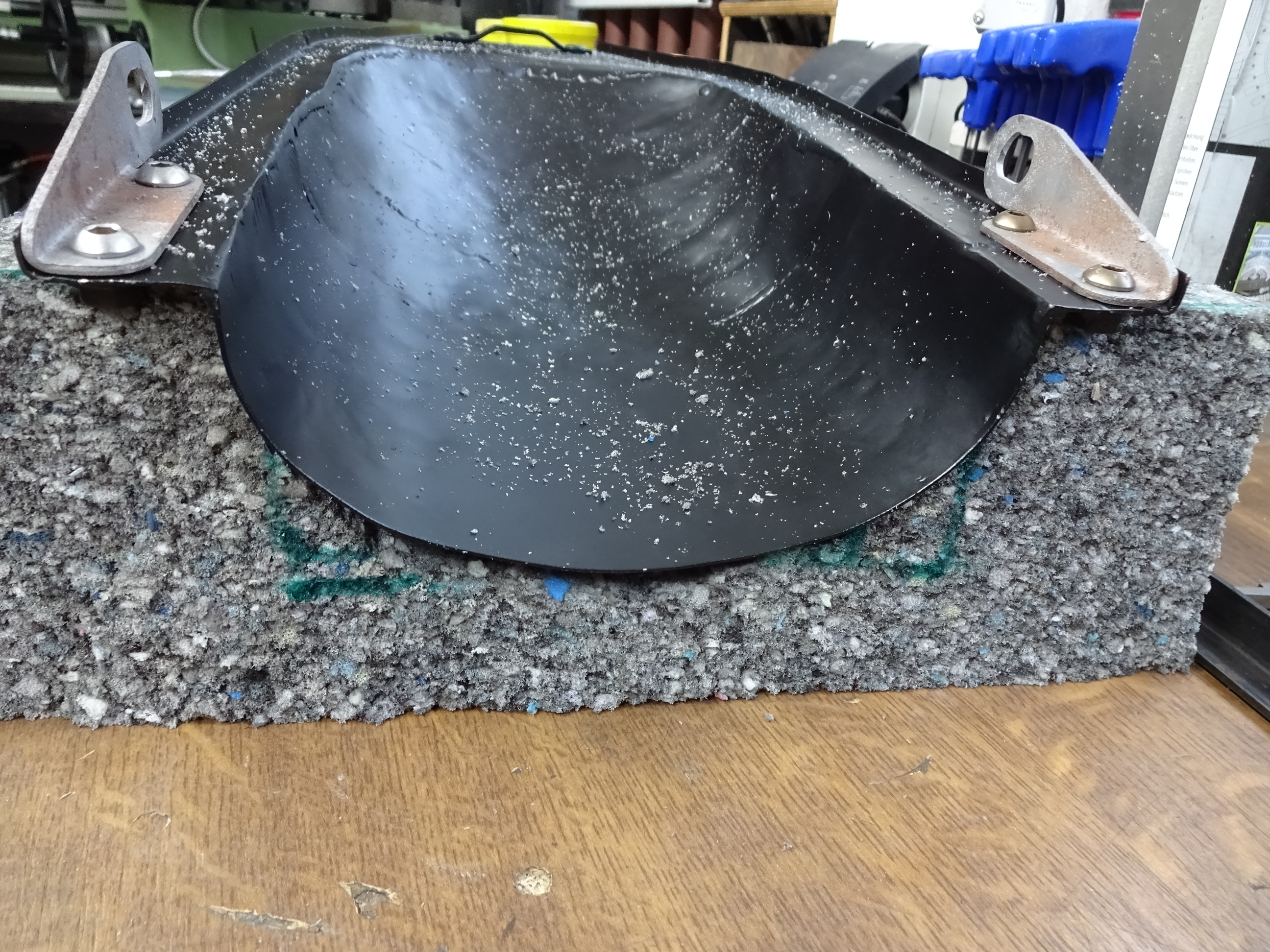 Mit der dünnen Klinge ging das recht gut die Rundung an Ende rauszuarbeiten, aber jetzt muss ich mit der Flex und Fächerscheibe nach innen weiterarbeiten.