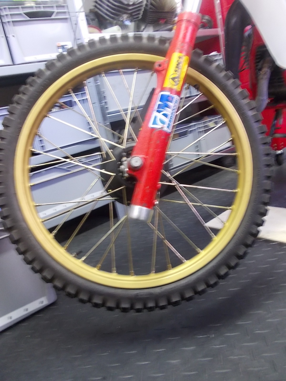 Bei der Vorbereitung zur Geländefahrt in Pfungstadtwar mir die gemachte Gabel bei ner Probefahrt einfach eingefedert hängen geblieben.