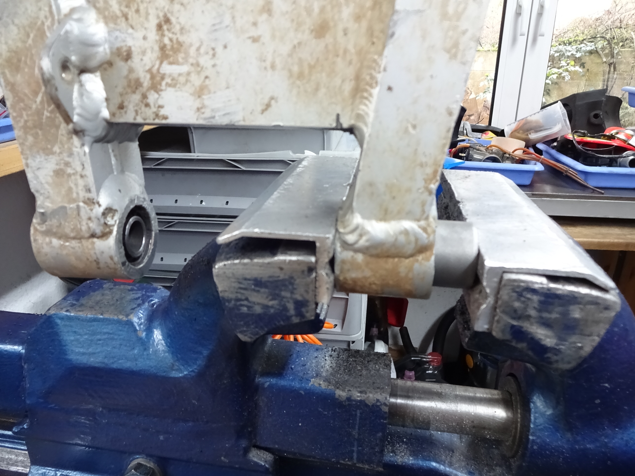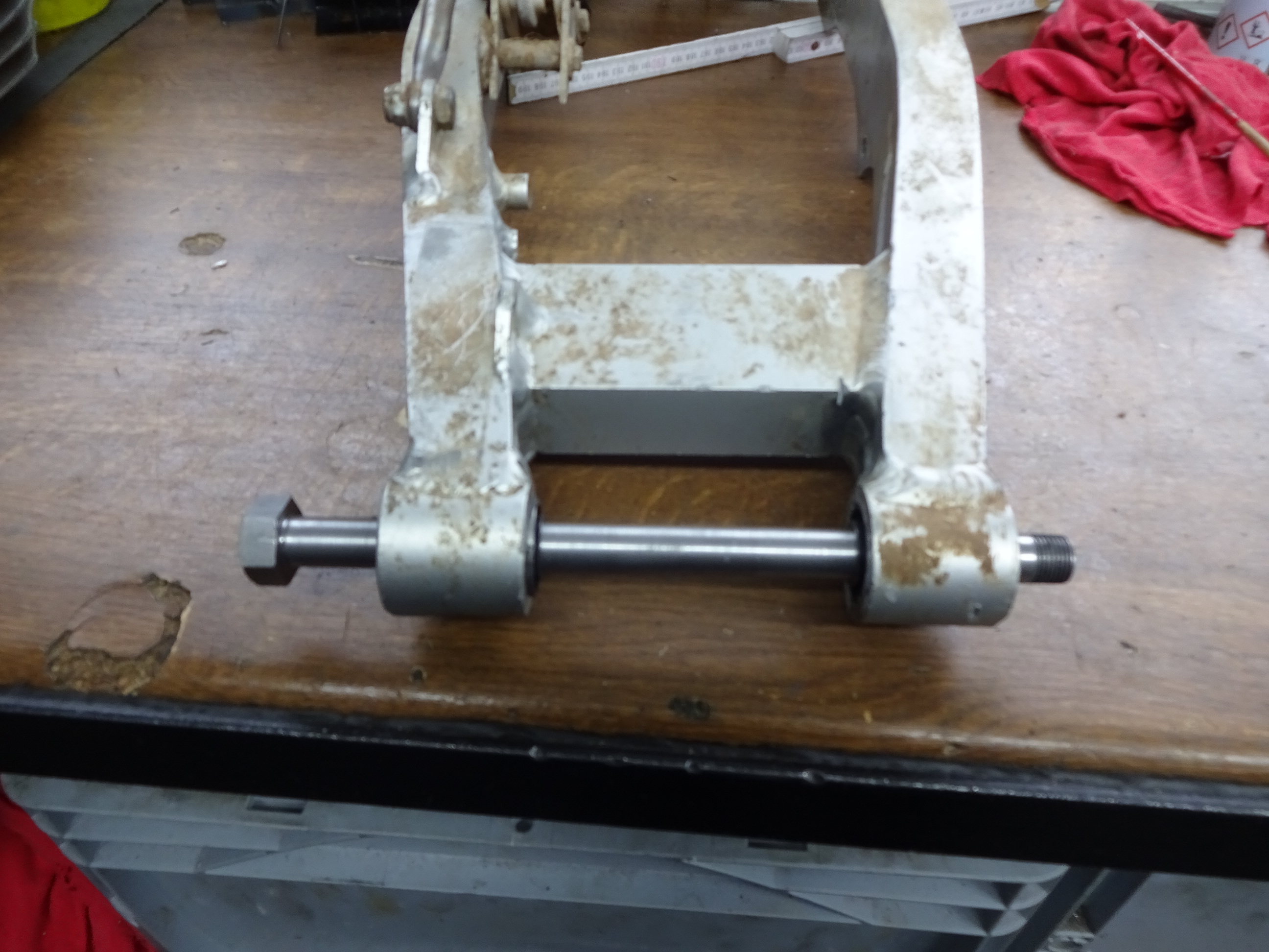 So gestern Buchsen in die Schwinge gepresst (mit ner kurzen Hilfsachse), passt alles