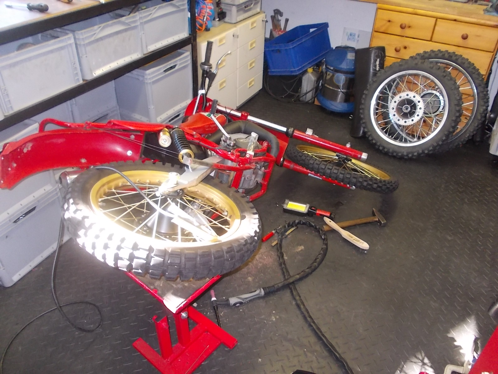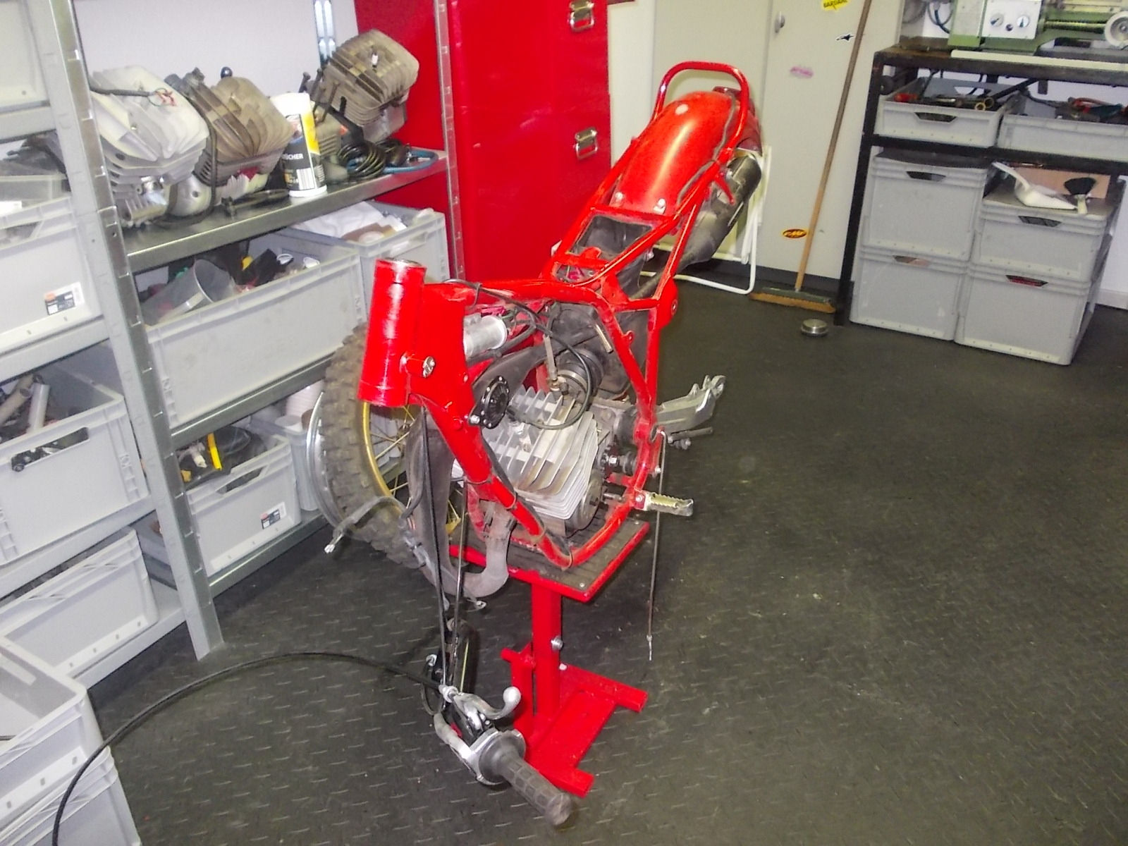 Dann noch ne verloren geglaubte Bremsankerplatte gefunden, jetzt kann ich die Bremse nach links bauen. So hab ich nachher auch nen schöneren Bremszugverlauf.