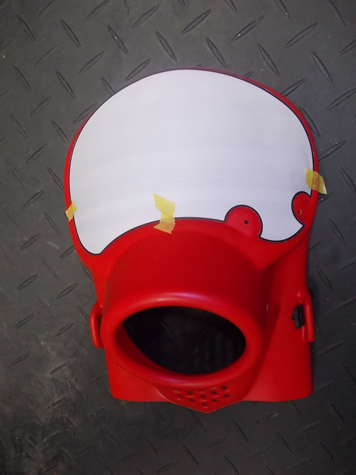 OK den Heissluftfön rausgeholt und mit dem Hammerstil den Seitendeckel angedrückt. Etwas erkalten lassen und dann den anderen Seitendeckel auf die selbe Art und Weise schon mal beigebogen. Zu guter Letzt aber beide im vorderen, oberen Bereich wieder heiss gemacht und mittels Kabelbinder fixiert