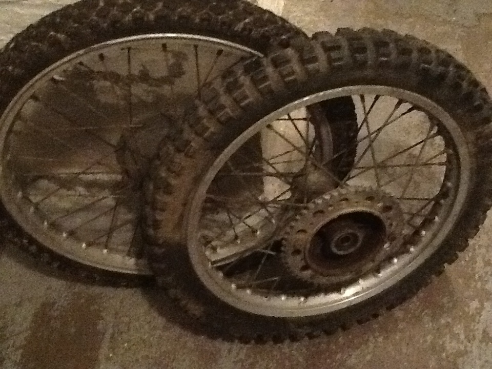 Tauchrohre sind eher von einer cimatti - auspuffendstück ist RX baureihe, geht aber auch - und vorne hast eine hochschulterfelge..... als gummi kannst stabilen haushaltsgummi verwenden .... gibts aber auch noch original -