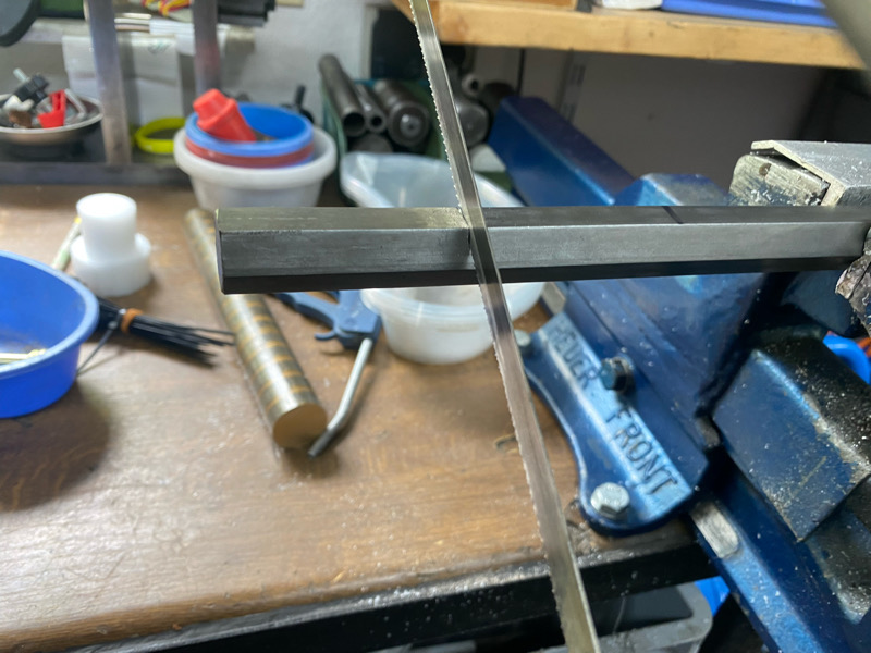 Aber dabei wollte es Kalle nicht belassen. Mangels passender Schafftschrauben sollte der Königsweg beschritten werden. „Da machen wir jetzt auch was passendes“ meinte Kalle und verschwand kurz ins Metalllager, um mir eine Sechskantstange, aus dem Amerikaner im 19. Jahrhundert den Lauf einer Rifle gezogen hätten, in die Hand zu drücken. Meine Versuche, zu erklären, dass ich doch passende Schafftschrauben noch selbst besorgen könne, gingen im Rausch der Drehorgie unter. Störe nie einen Mann, der durchdreht, dachte ich mir, und begab mich daran, wieder Maß zu nehmen und dann durfte ich ablängen: